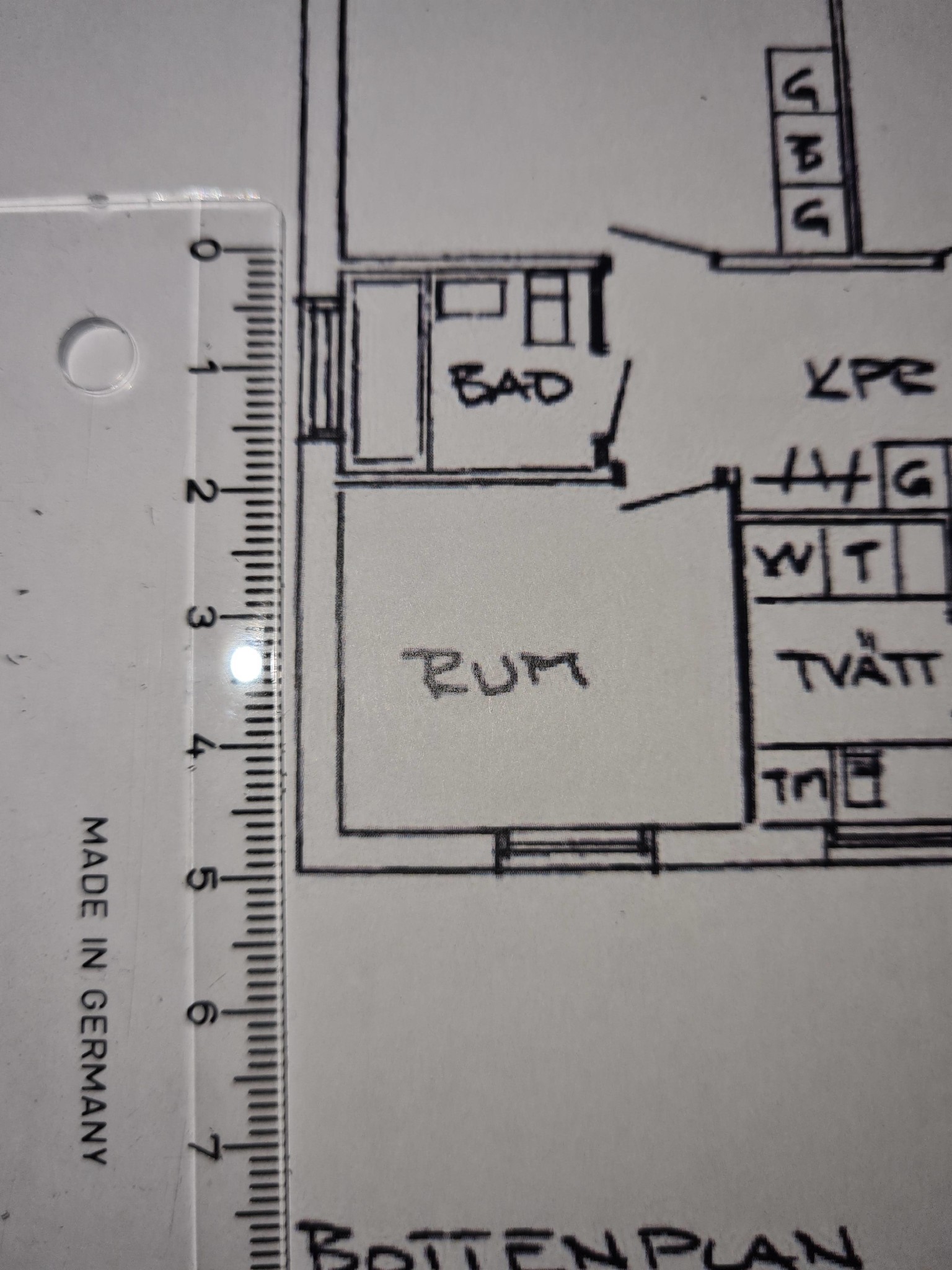 Bifogar nuvarande planlösning där det alltså är 'Bad' och 'Rum' som är de tillgängliga ytorna.