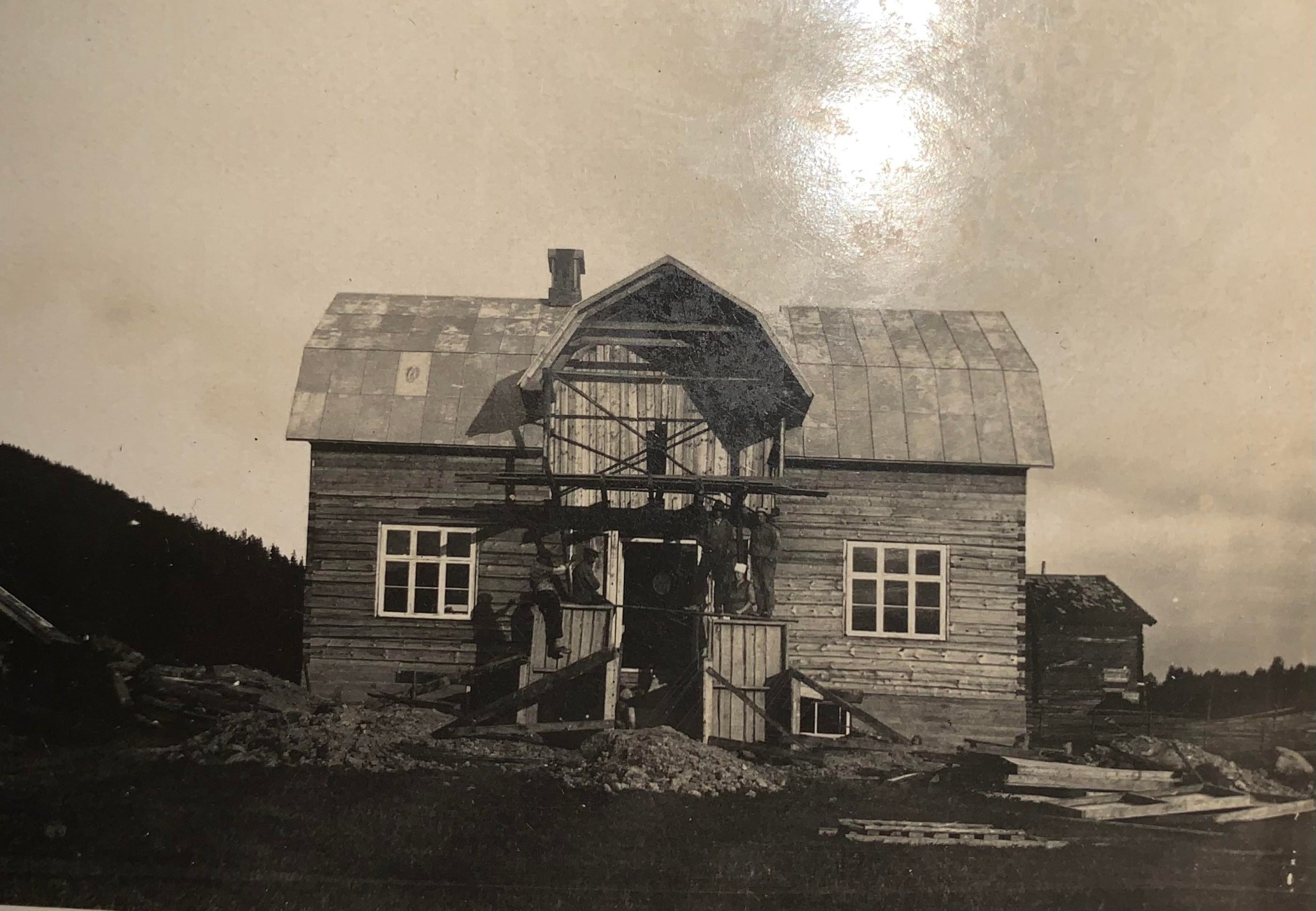 Men, på bilder som jag med 99% säkerhet vet är från när huset byggdes, ser det ut som att det är laxknutar på hörnen. Det innebär väl att det bör vara timrat? Eller förekommer laxknutar i andra fall…? Jag ska försöka leta upp bilden och ladda upp även den.