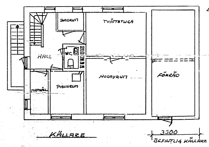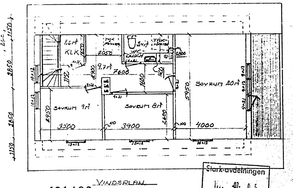 Bland bilderna återfinns ritningarna vid bygget. De med lite snyggare grafik är så planlösningen ser ut numera med några väggar rivna.