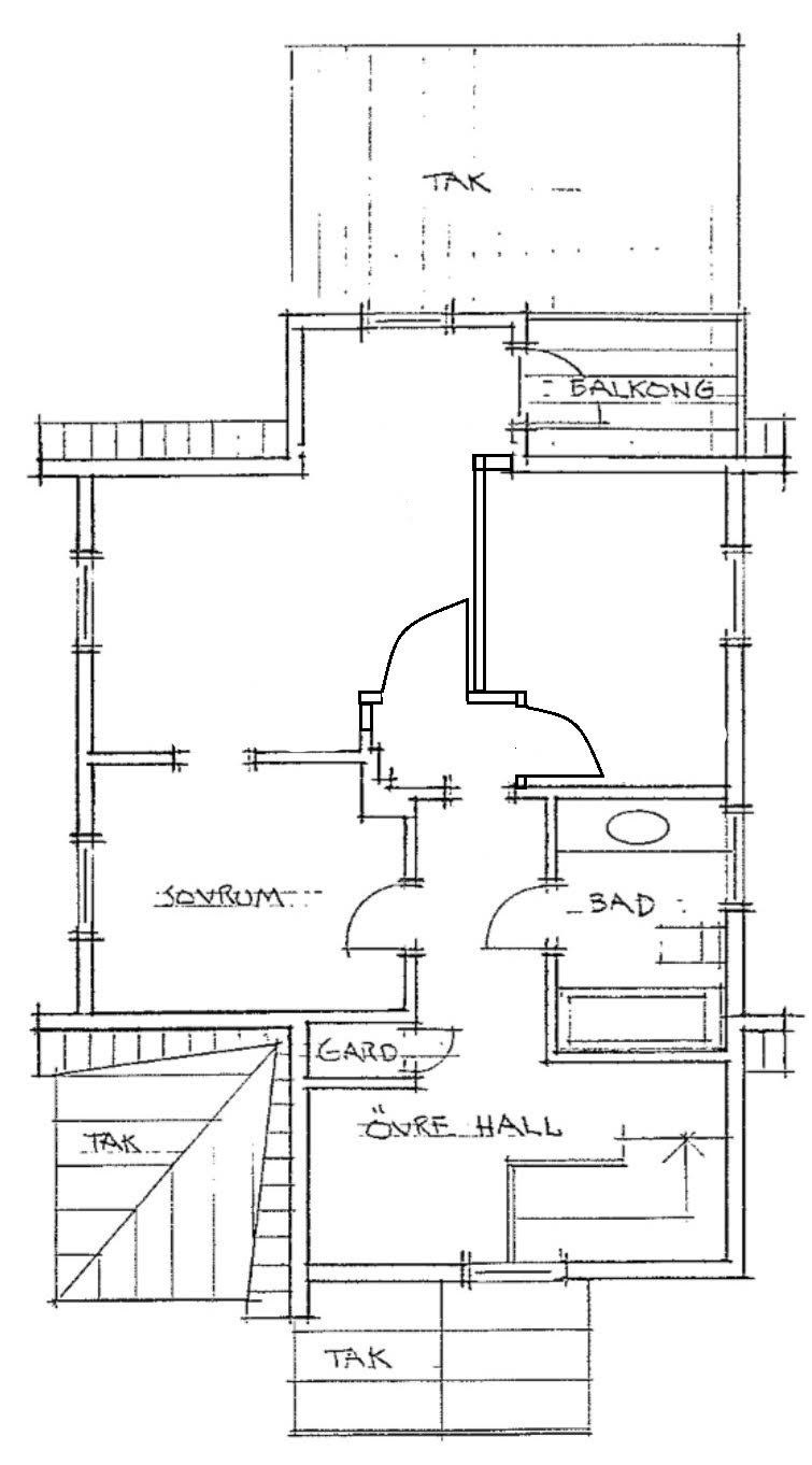 Jag skulle vilja ha lite synpunkter på planlösningen på övervåningen i min 20-talsvilla. Huset är tillbyggt i omgångar och har tidigare varit 2-familjshus,