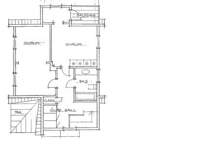 Hallen längst ner där trappan kommer upp är ett dåligt utnyttjat utrymme. Likaså den lilla smutten längst upp i bild. Drömmen är förstås att få tre rejäla sovrum plus badrum som alla kan nås utan att passera genom andra rum. Jag hoppas att någon har ett förlag så man kommer åtminstone en liten bit på vägen.