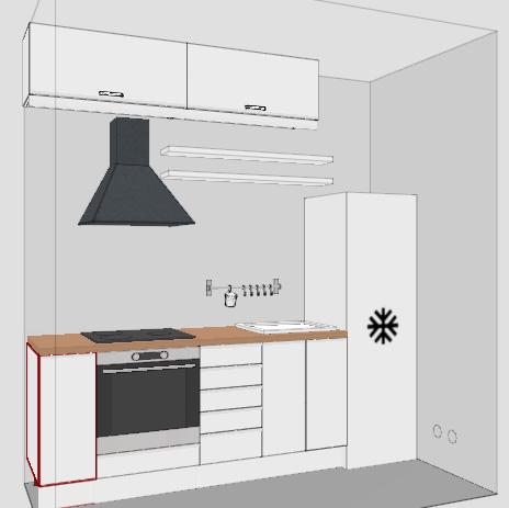 Tanken är att ha en kombinerad ugn/micro, en 55cm kyl/frys med frysen under, samt en standard keramikhäll. Sedan självklart en ho (1 eller 2), gärna plats under hon för en bänkdiskmaskin. Avloppet sitter längst in i köket på kortsidan.