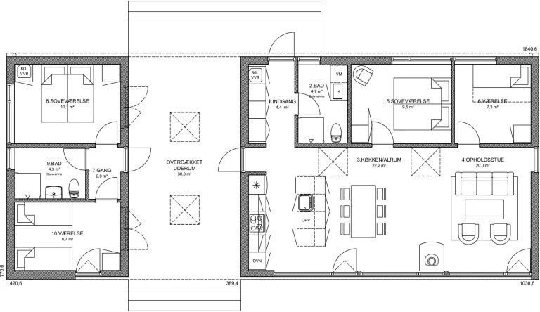 - Vi har minskat på korridorslängden genom att avsluta korridoren med ett allrum i ena änden.