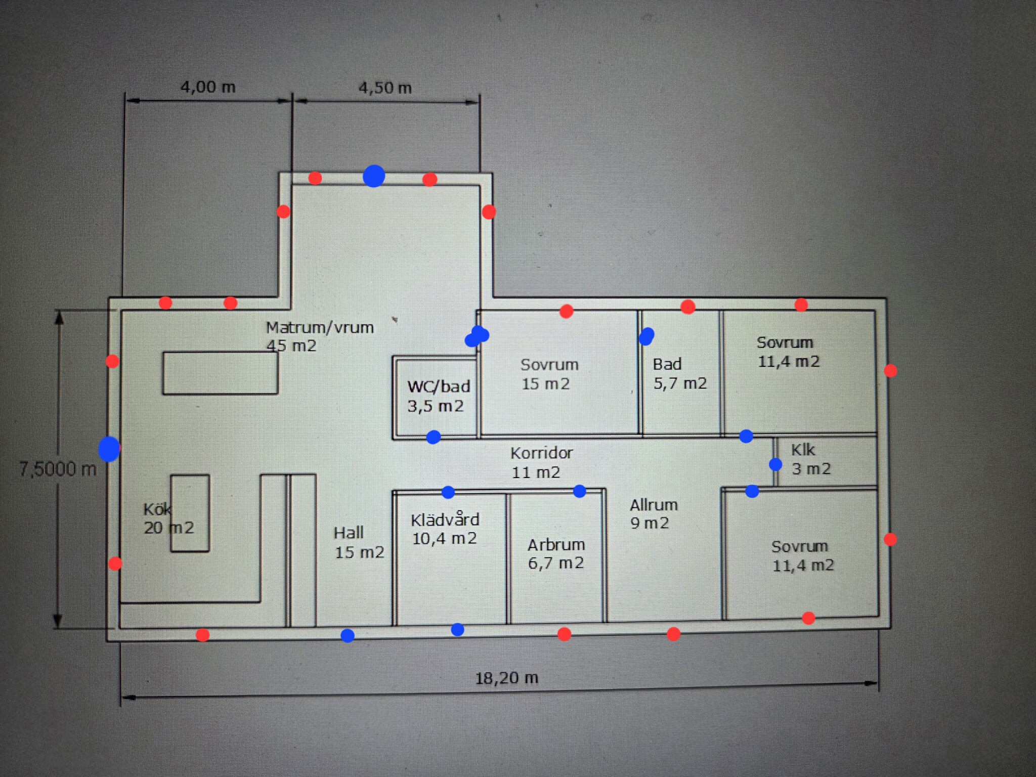 - Vi är lite osäkra på fönsterplaceringarna, men det här är ett utkast.