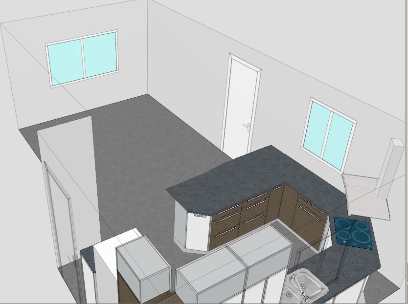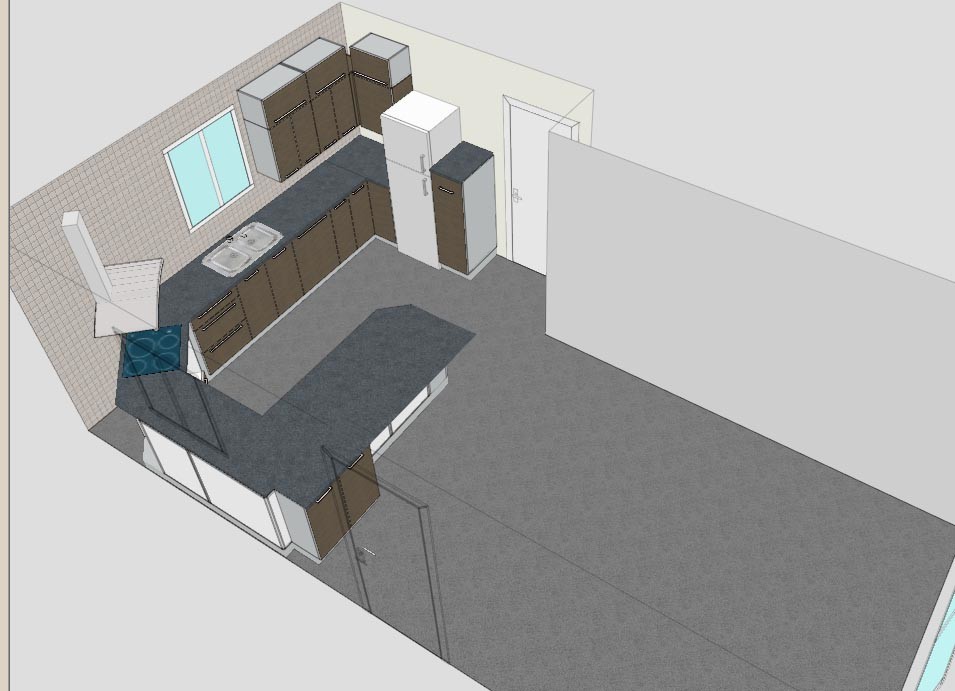 Vad gäller spisen så ska vi givetvis bygga en "snedvägg" bakom och sen bygga in en liten hylla i hörnet. Det var lite svårt att få det snyggt i ritprogrammet.