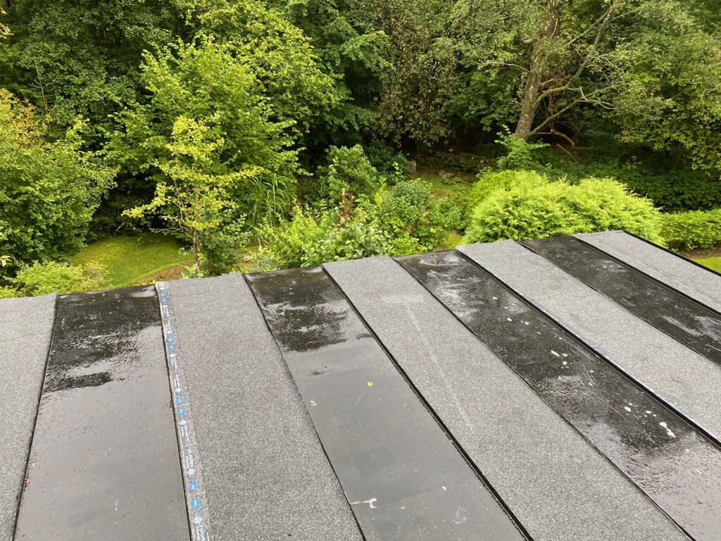 Taket är 430 x 520 cm. Plåt. Jag har ordnat med att lägga underlagspap, icopal. Tanken är att bärande reglar löper längsgående där jag lagt ut papp och ligger då i linje med takreglarna.
