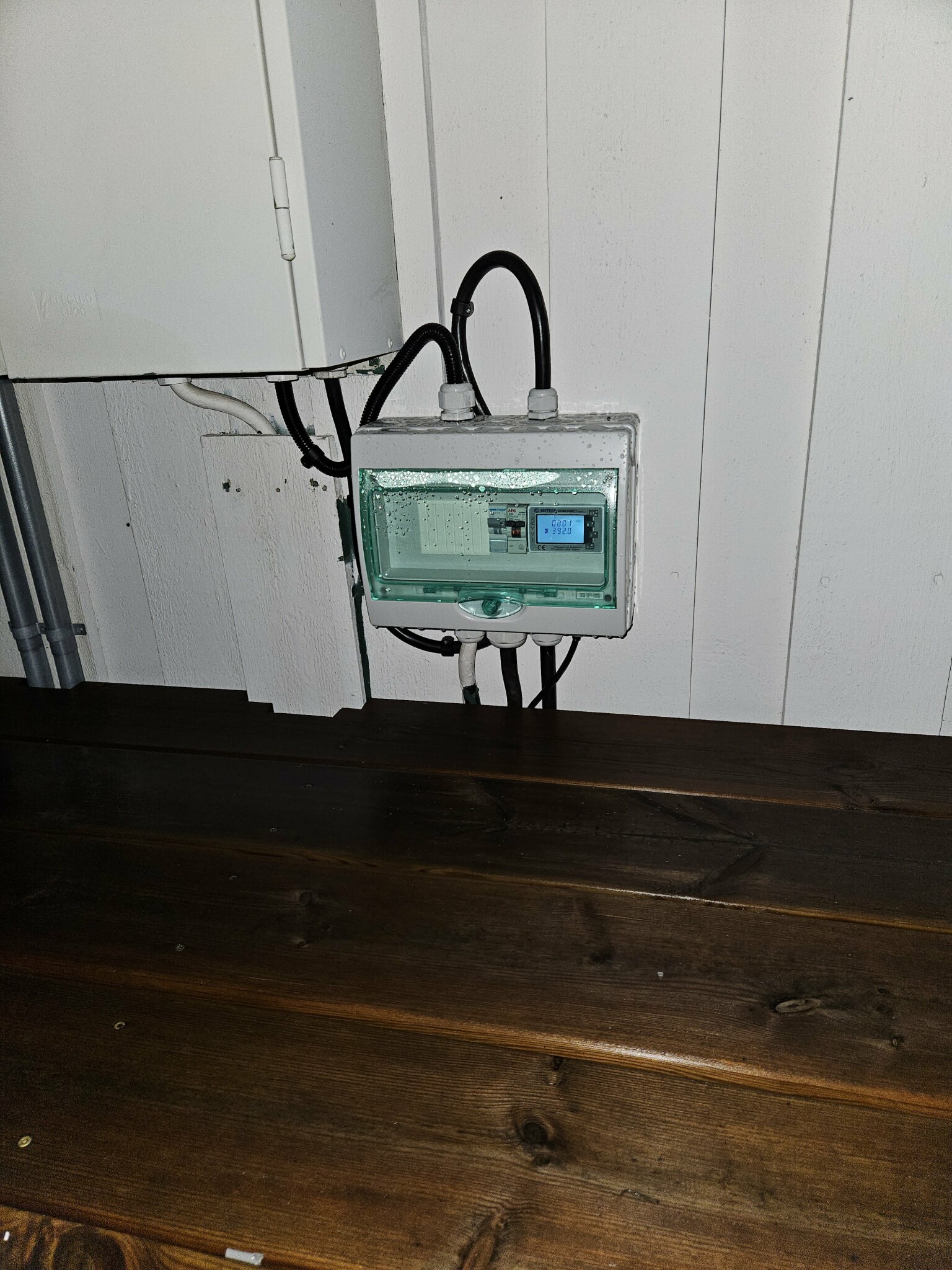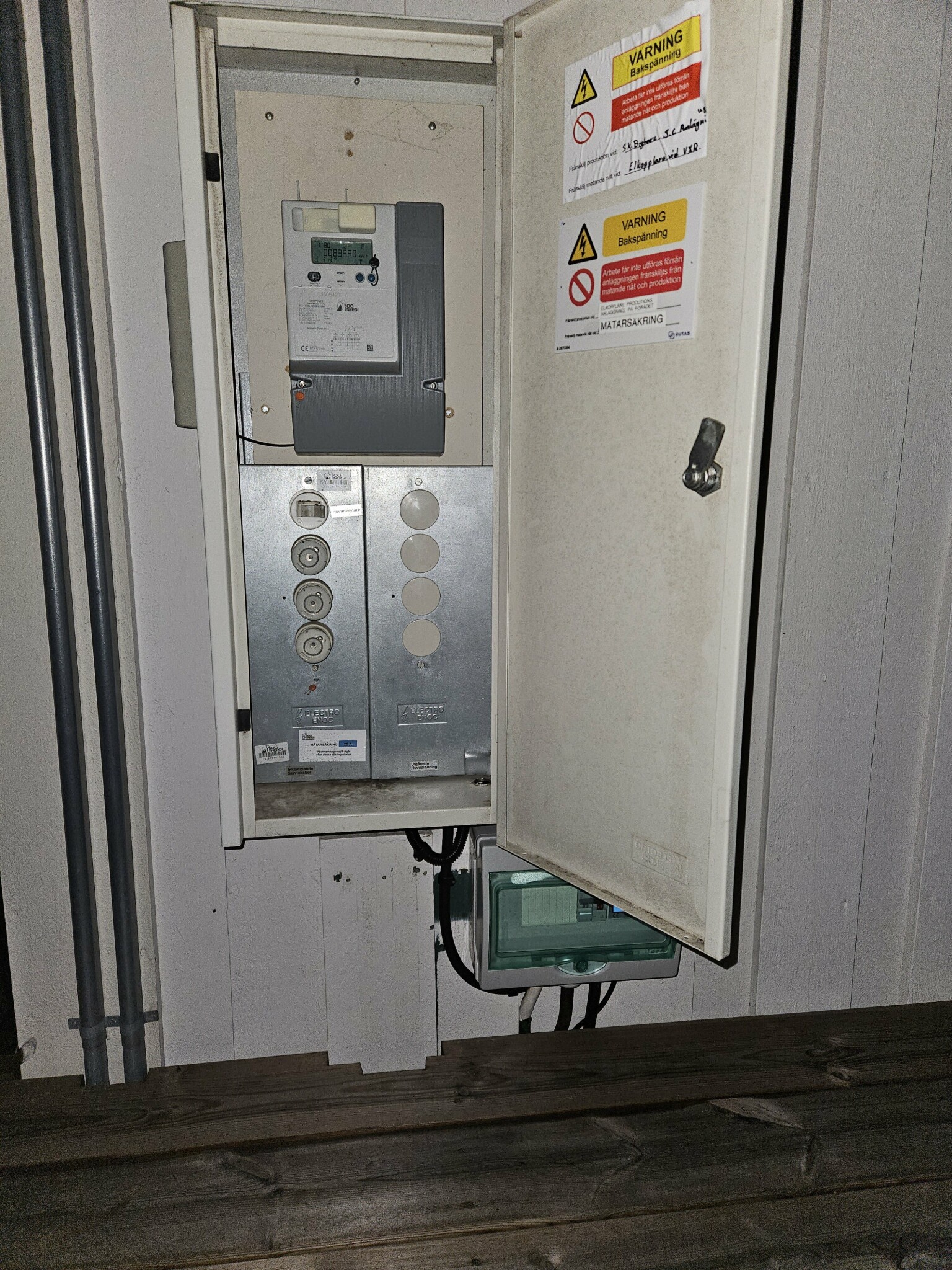 Det är tre utgående huvudledningar, en till husets undercentral, en till garaget och den nya till boden där växelriktaren sitter.H HSP skrev:Hur ser det ut i insidan av mätarskåpet? Intressant att se hur de dragit in de nya kablarna till smartmätaren...