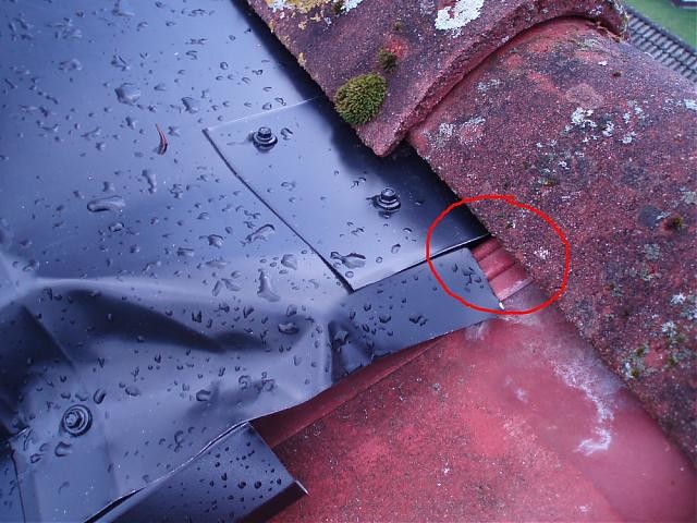 Det går förmodligen att sätta dit plåtbitar/bly för att få det tätt, men jobbet är inte fackmannamässigt utfört (iaf inte utav en plåtslagare).