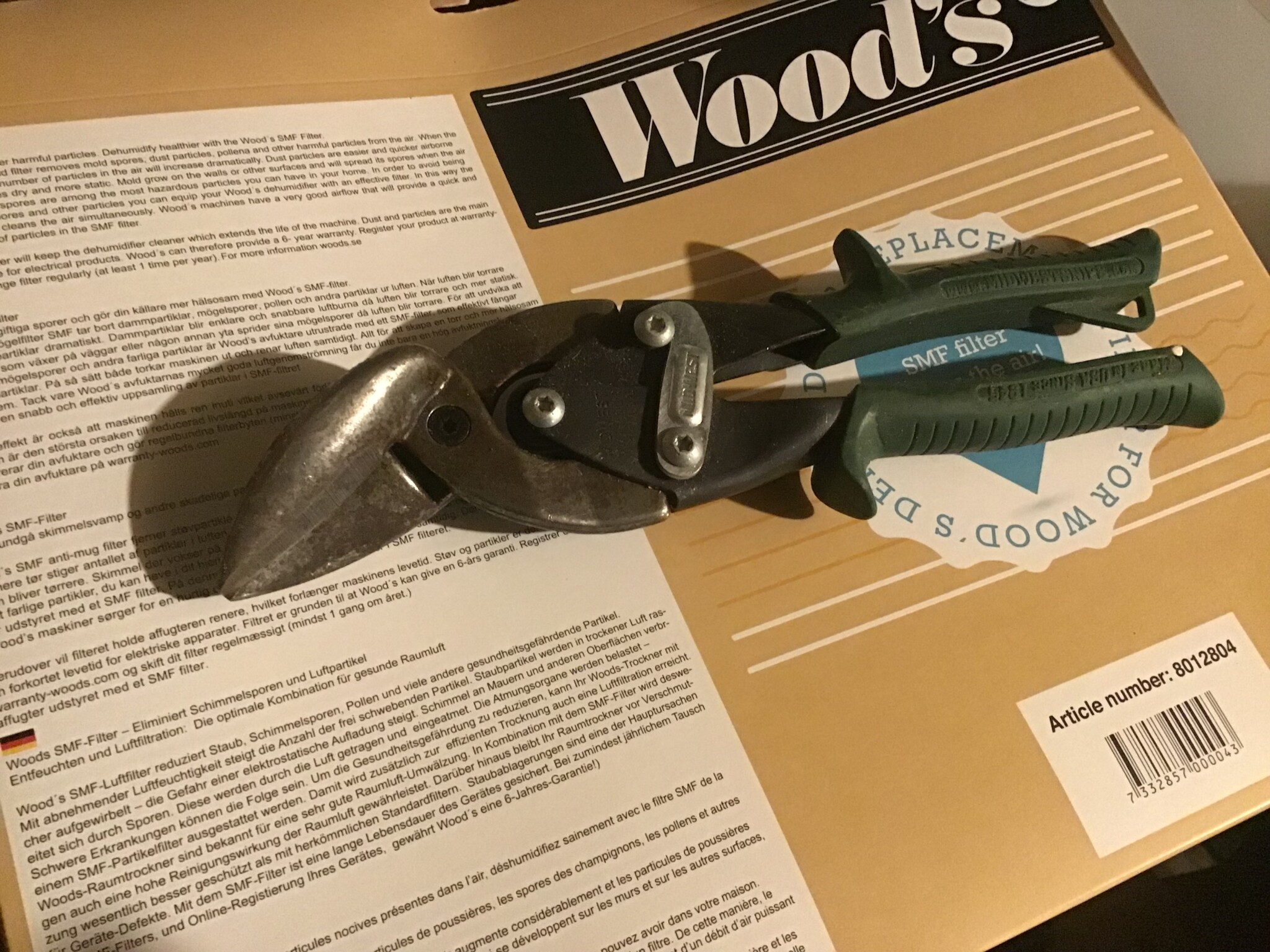 Ska man klippa lite längre, större plåt och båda bitar ska vara användbara är det en sån här sax man skall ha.