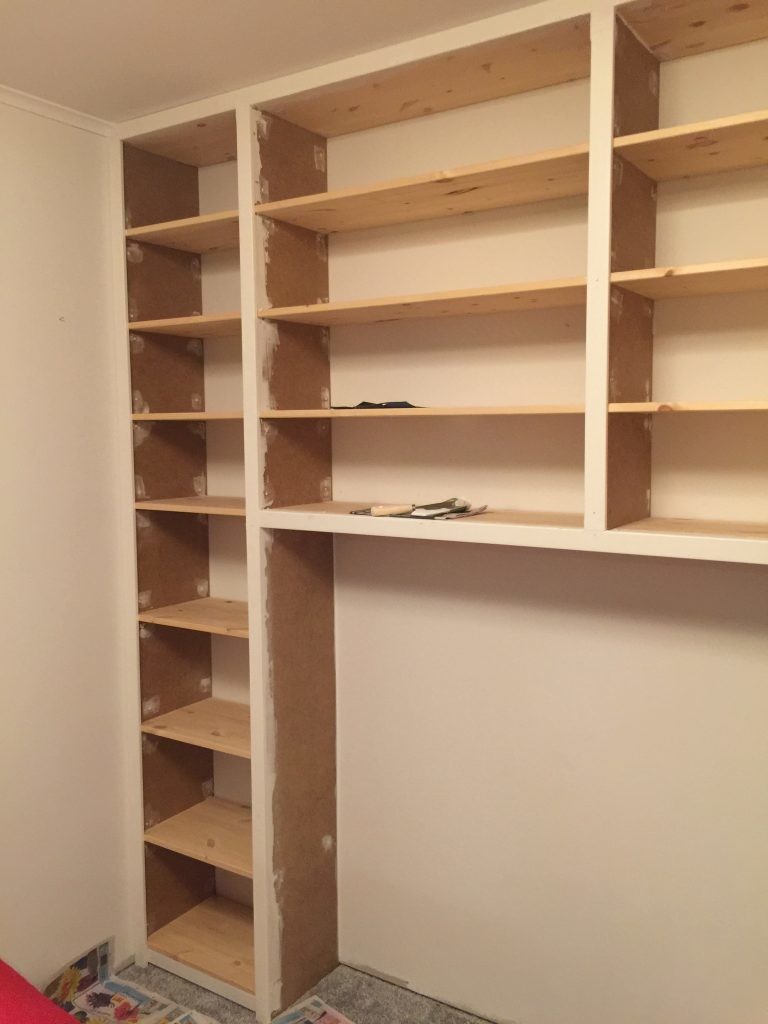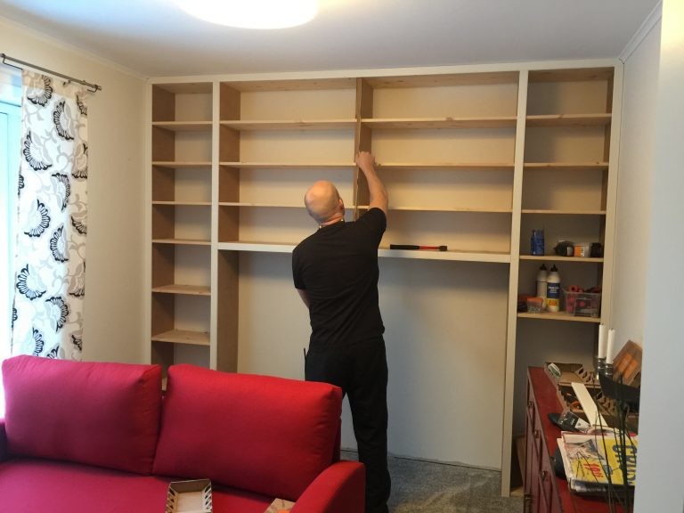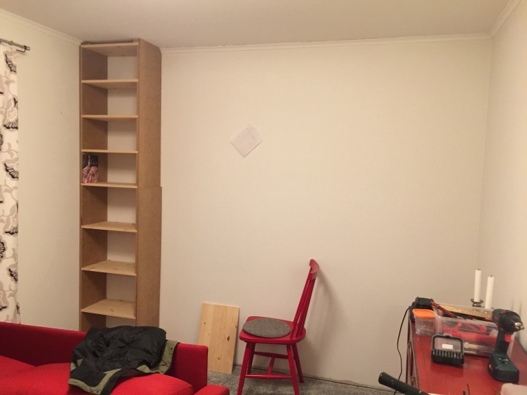 Fick äntligen tummen ur att bygga bokhylla. Jag letade ritningar och mannen fick skruva