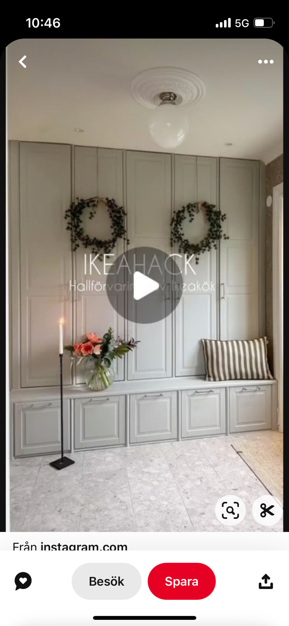 Hej! Jag ska bygga en garderobsförvsring likt denna i hallen. Jag har köpt köksstommar från Ikea-metod samt upphängningsskenor men inga fötter till skåpen då de var för höga för att få plats.