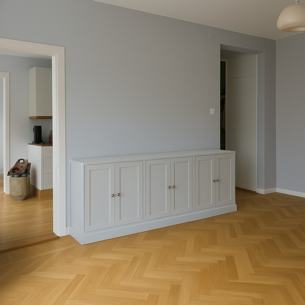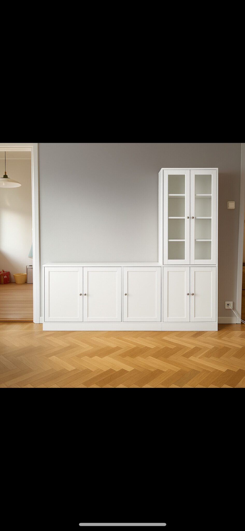 Jag har sett på forum att Havsta från ikea är en bra bas, på grund av just materialet som är massiv furu. Min önskan hade varit att placera tre stycken ''Havsta skåp med sockel'' på rad med en toppskiva, samt målad i likadan färg som väggen. Tyvärr (🤓) är Havstaskåpen 81cm breda, och det blir helt enkelt för brett då väggen är ca 230 cm bred.