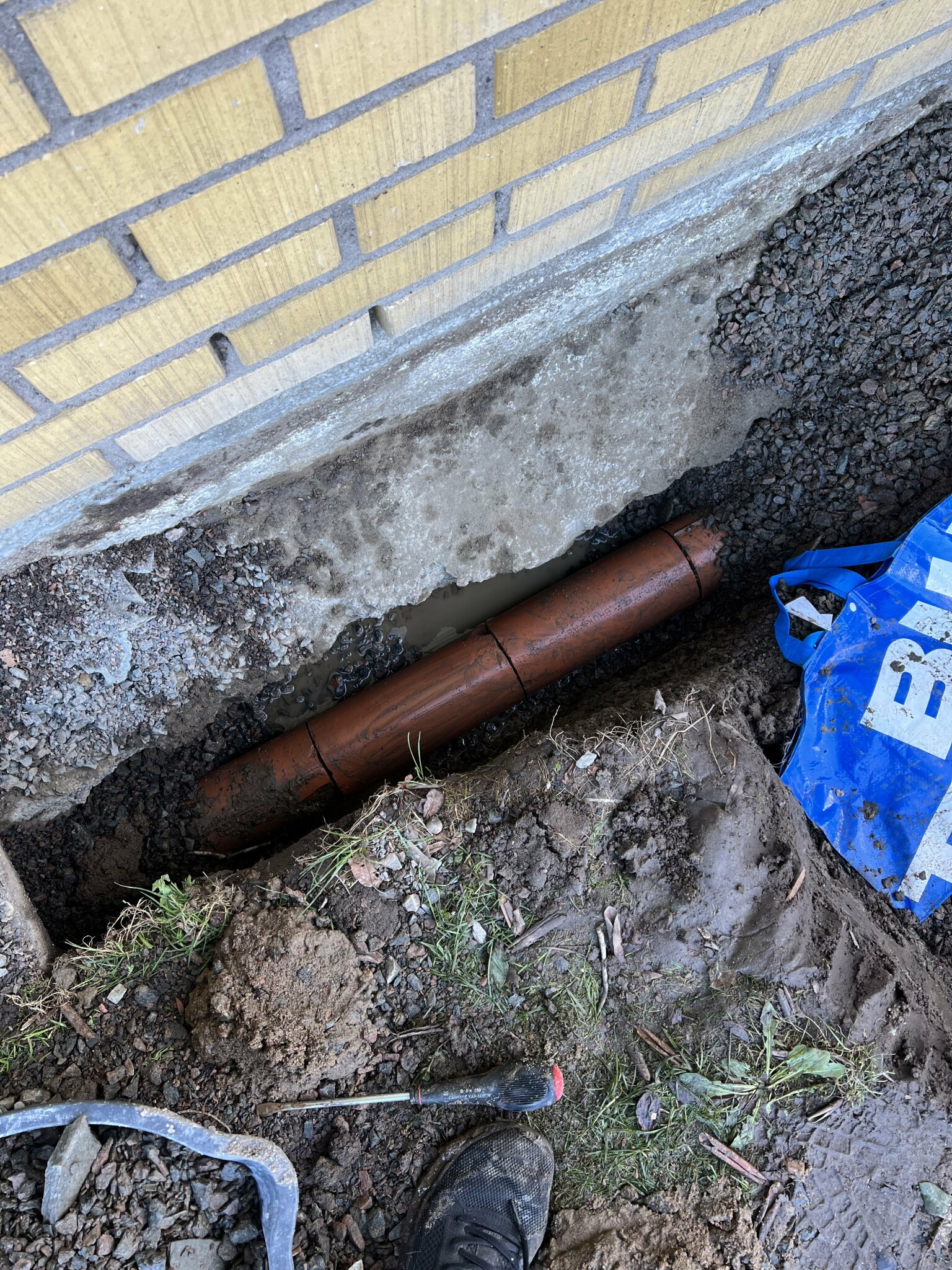Därav är tanken bara gräva upp en liten bit av den för skarva på ett plaströr som går ut mot trädgården för hjälpa till dränera de stora vattensamlingarna som blir vid mindre regn och som sedan står i 1 - 2 dagar.F fribygg skrev: