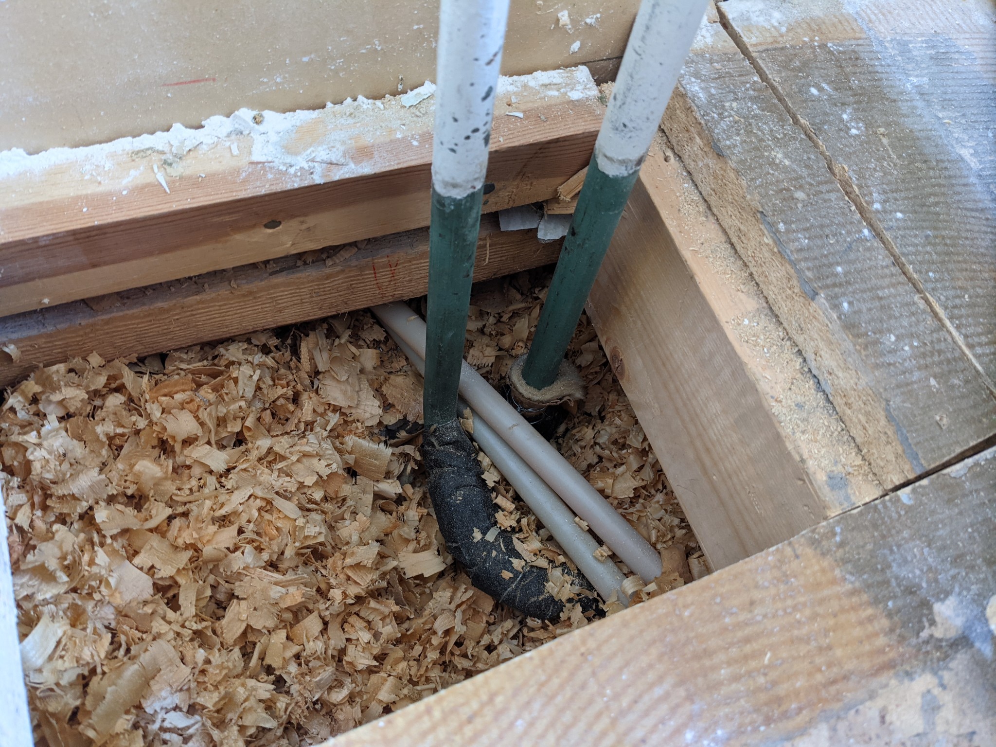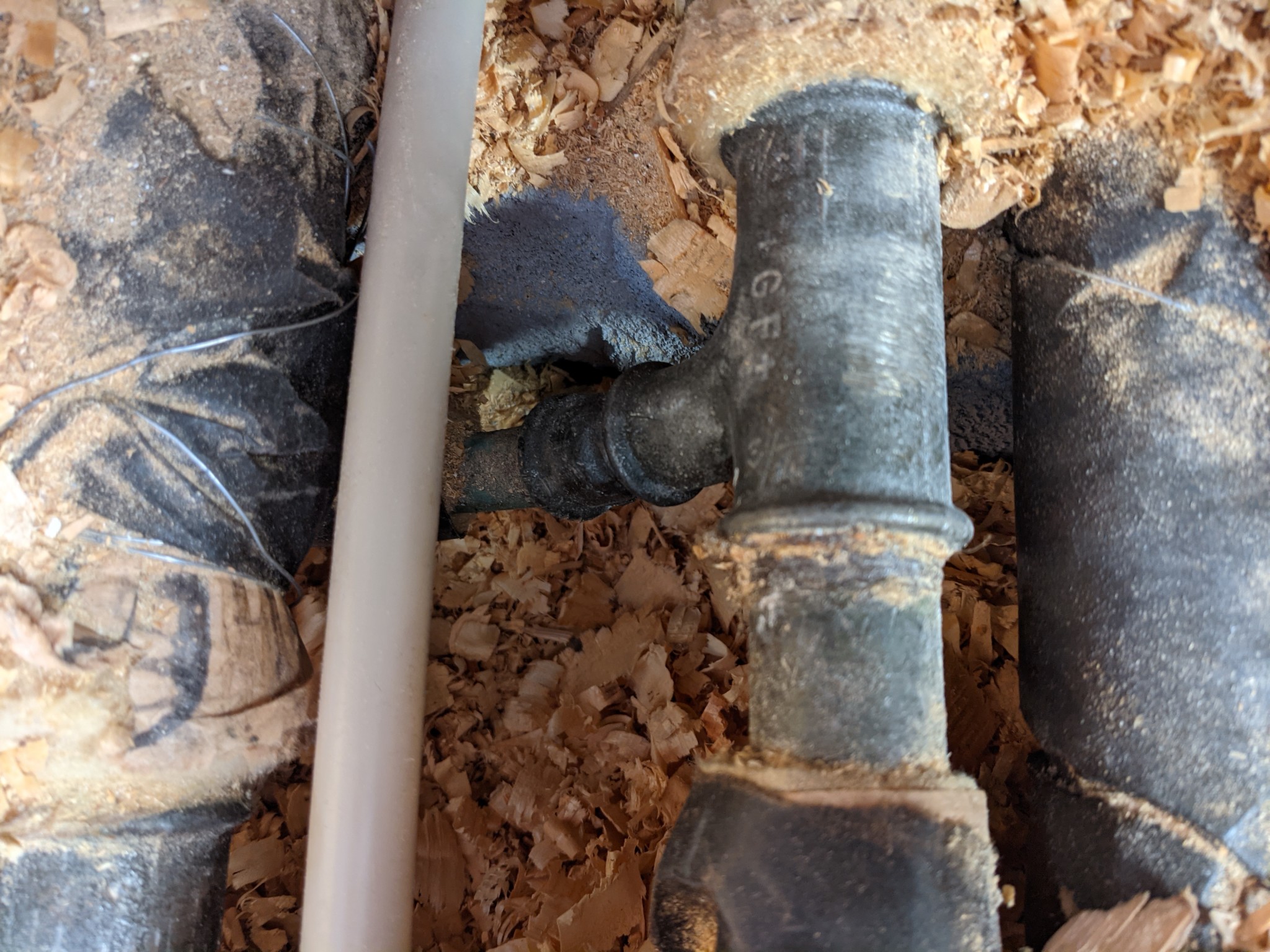 Jag följde de två rören lite längre bort till förgreningen. Var inne på att gänga av skarven och sedan använda en svart propp.