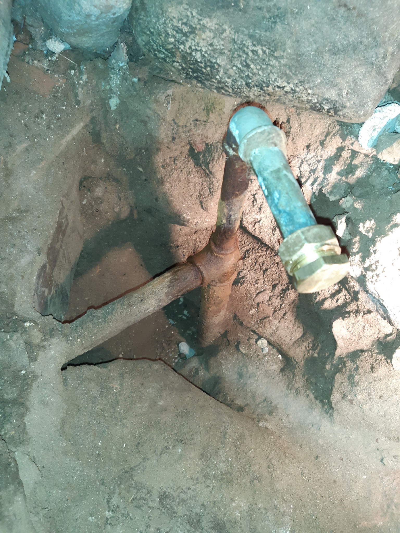 Vattnet kommer in underifrån och har sedan gått vidare till köket (horisontellt från T-kopplingen) som nu är nedmonterat och flyttat. Skulle därför vilja plugga igen kopplingen så långt ner som möjligt för att få bort så mycket som möjligt av det gamla rostiga, helst under T-et.