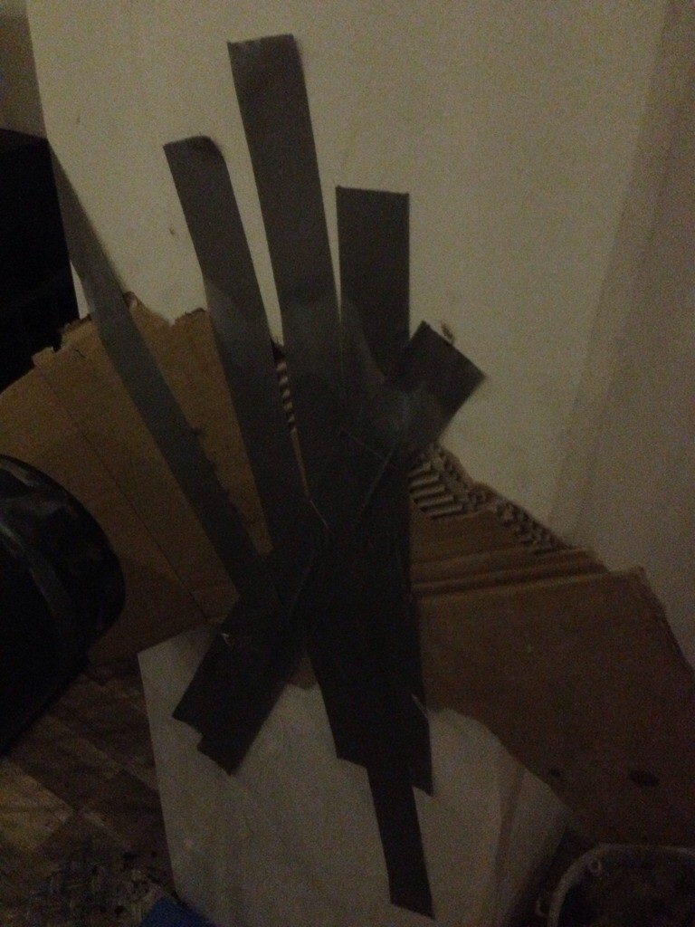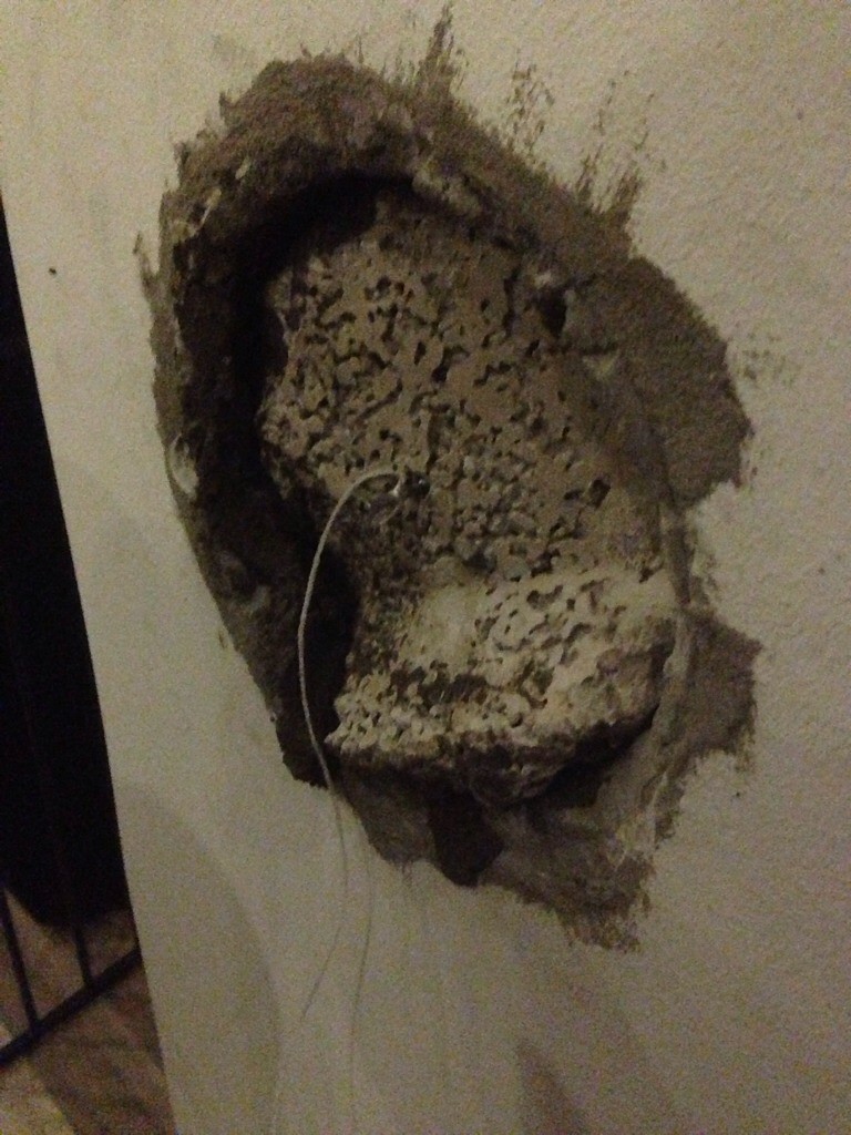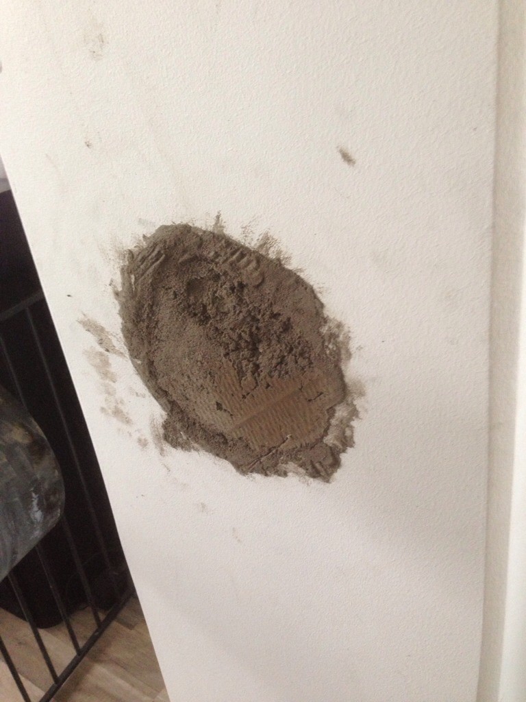 Jag tog en bit av murstocken som blivit över, fila till så jag hade någon cm över runtom, sleva finjabeldfast bruk och pressade in den. Byggde sedan upp med bruket och satte en kartongbit på utsidan för att hålla kvar.