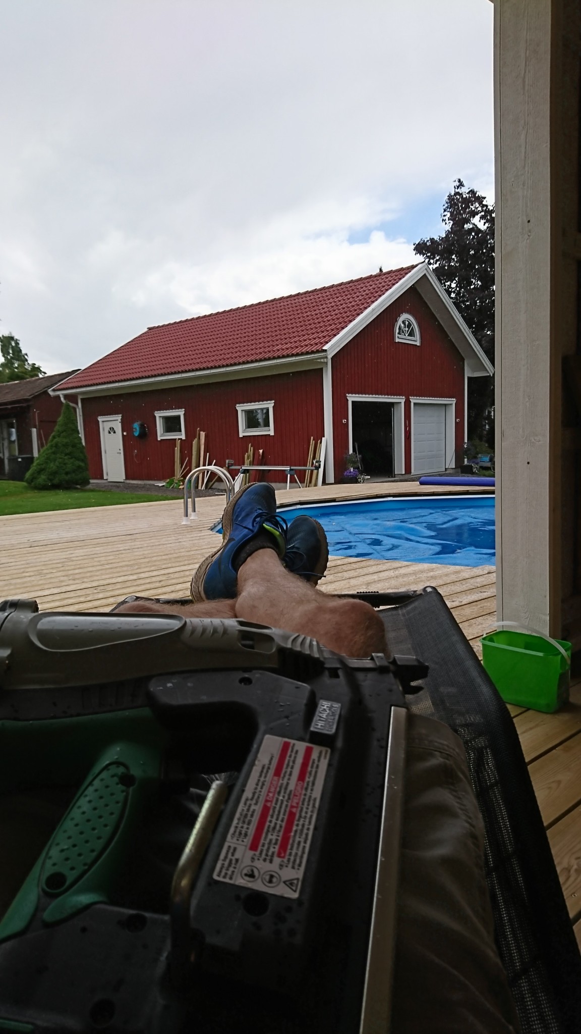 Knutarna inåt gården klara, varmt i solen och dåligt med ork efter 2 fm skift.