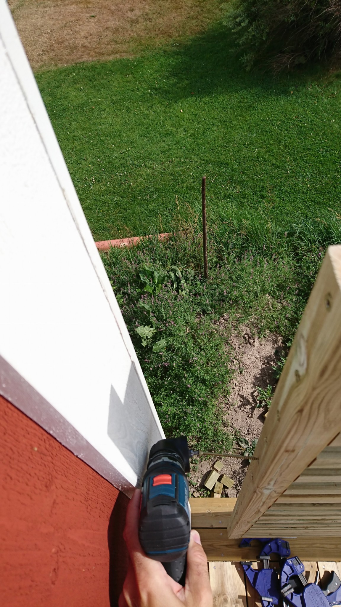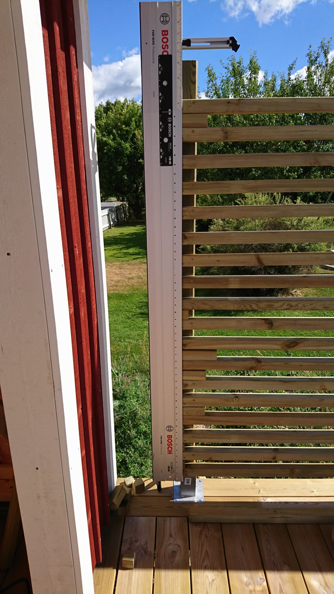Avståndet mellan vägg och staket är krympt till minsta möjliga för att komma åt och skruva.
