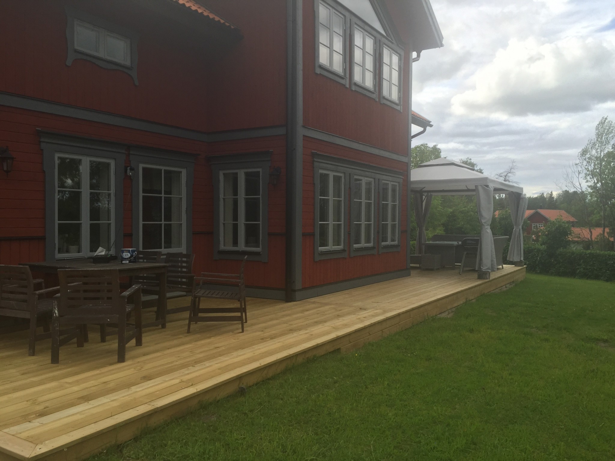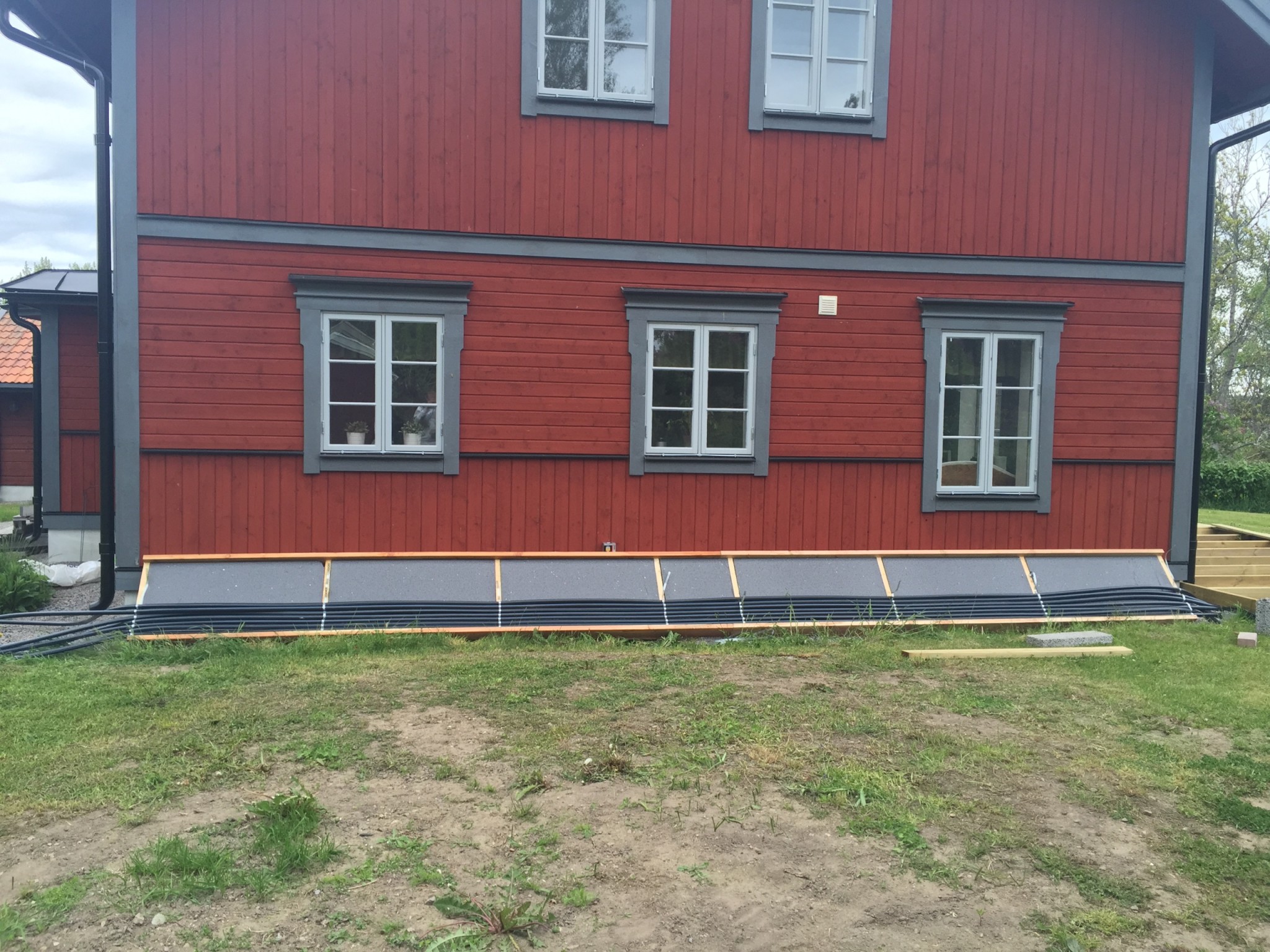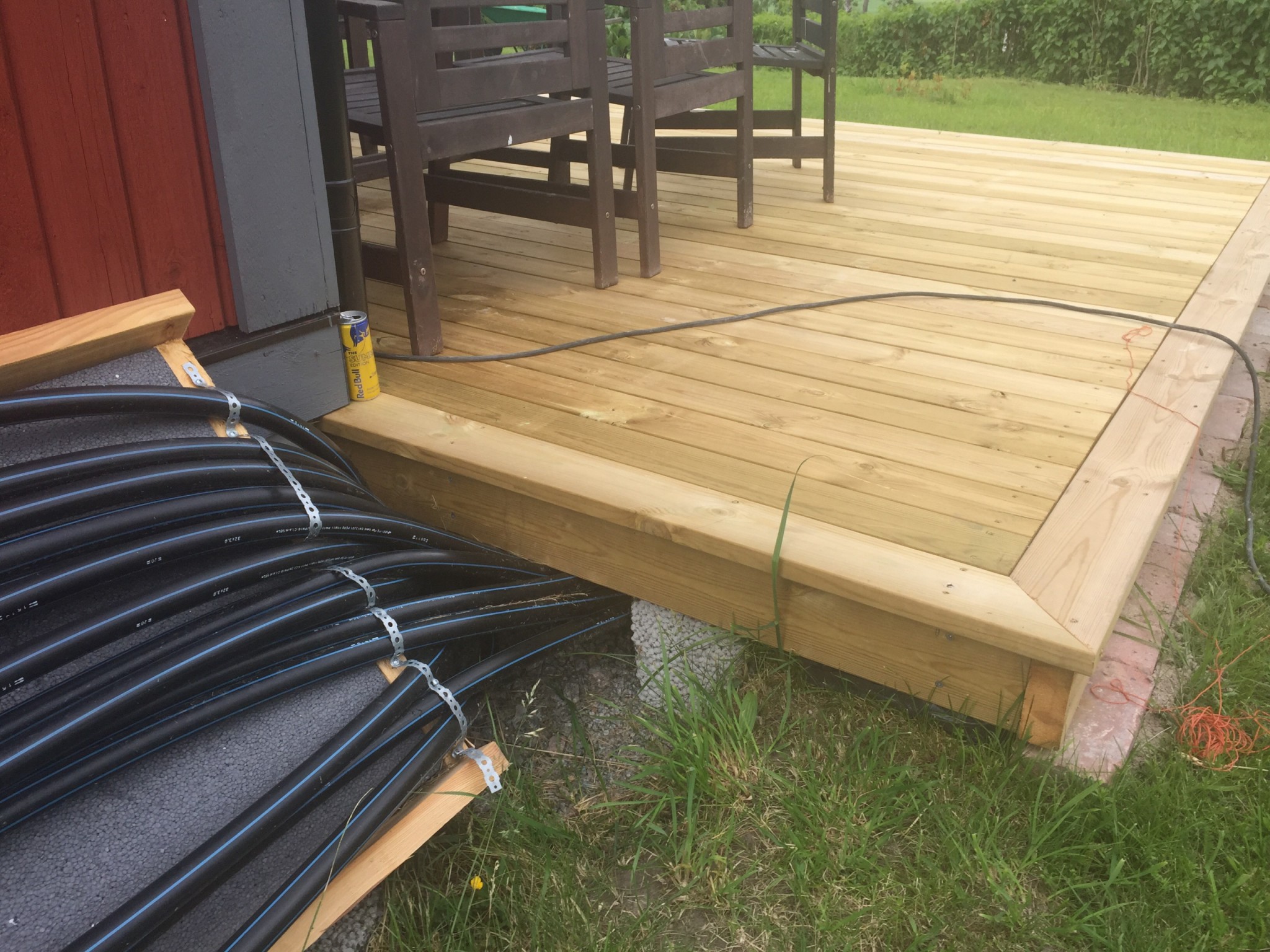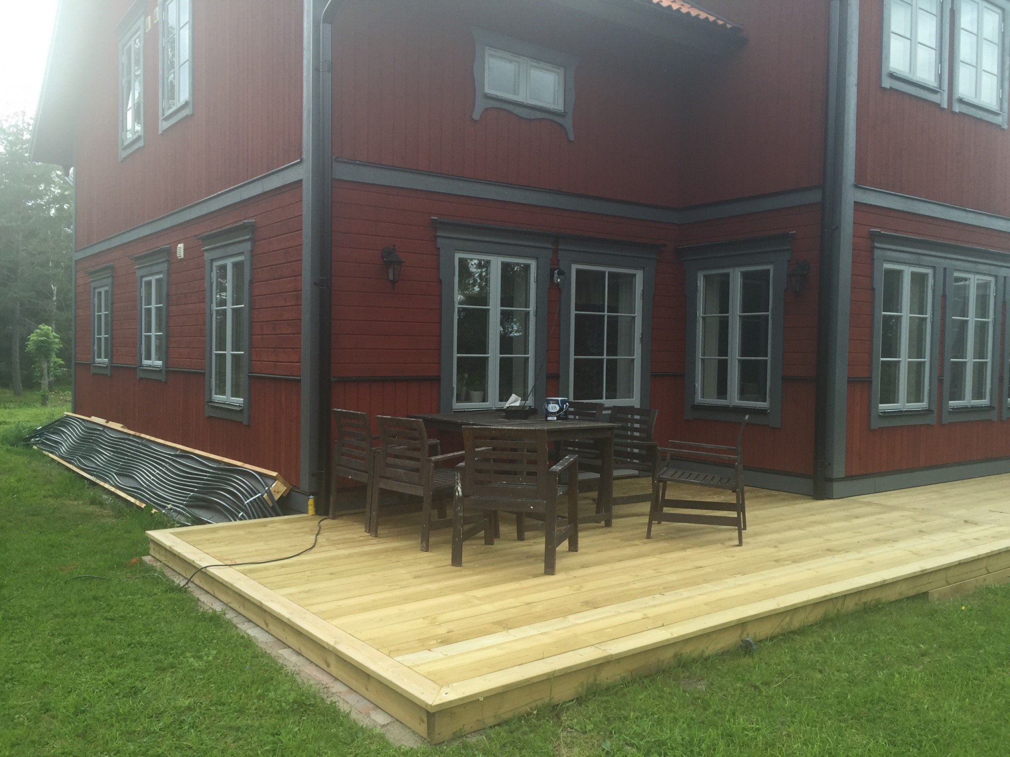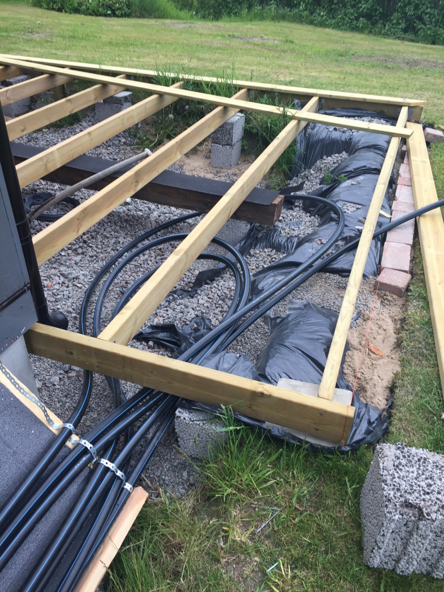 Bilder på Bygget, Skall även bli trädäck på framsidan som jag tänker mig att slangen får vända under, lika som på baksidan alltså, Framför "drivhuset" skall jag även anlägga en 50 stenlagd gång som ska gå mellan trädäcken