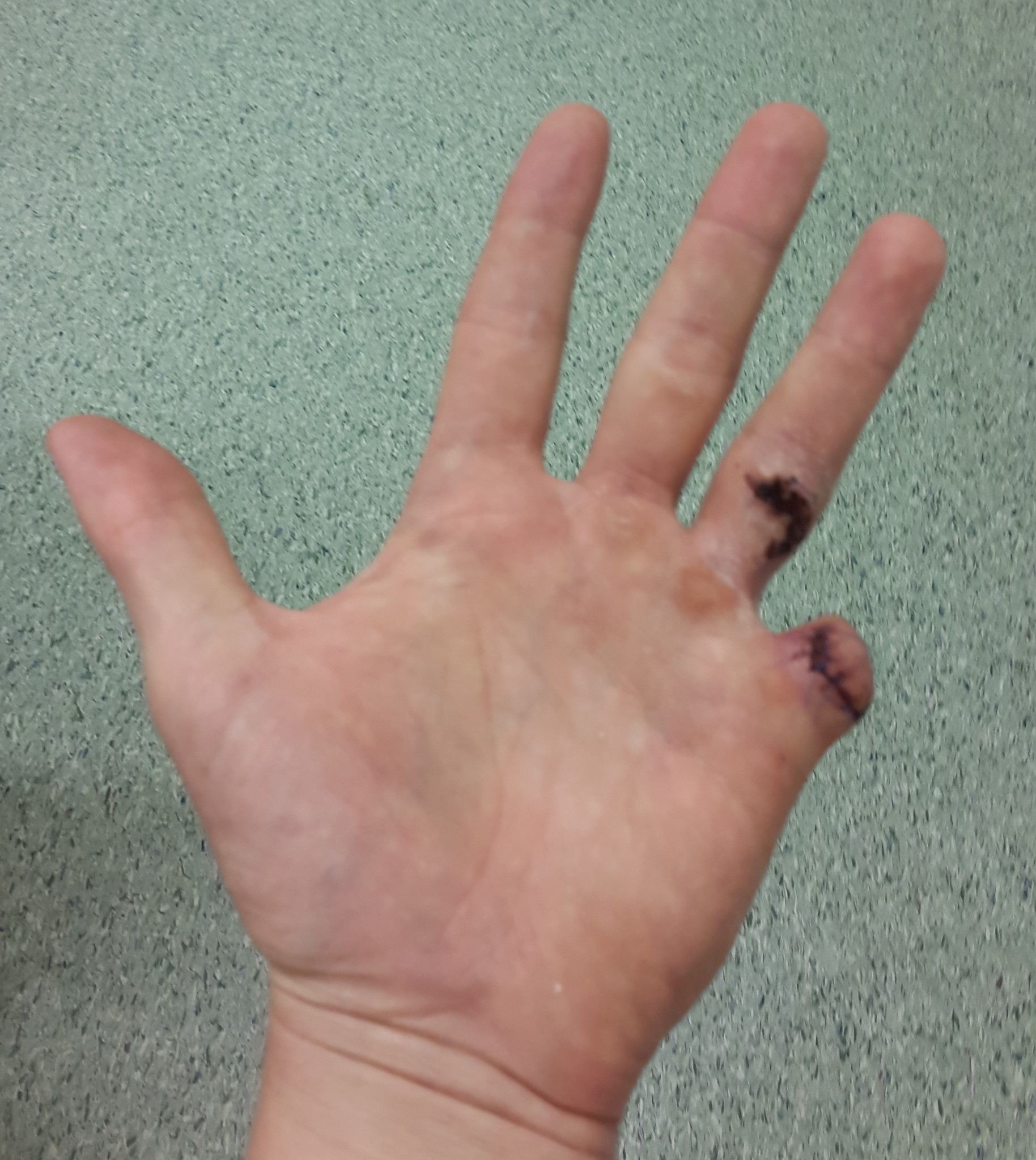Kan således bara räkna till 9,1 och tappat en del känsel i ringfingret. Det jobbigaste är inte att ha blivit av med fingret, det känns ändå ok efter att ha rehabat handen i 8-9 månader eftersom jag tappade en stor del av greppstyrkan och även fick någon belastningsskada i handen.