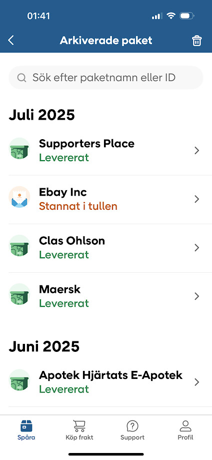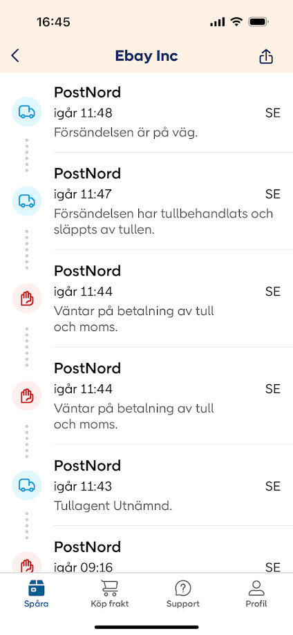 Betedde sig märkligt som tex. att den inte uppdaterade sig efter att jag gjorde val som att Postnord skall vara förtullare mm. status oförändrad dygn senare, så jag startade om appen. Tror ni inte att försändelser då hamnade automatiskt i Arkivet fast de inte är levererade + statusen har inte ändrats, men går man in och kollar försändelsens rutt ser man "rörelse"... Sen att det står att de väntar på tull stämmer inte heller då det är förbetalt...