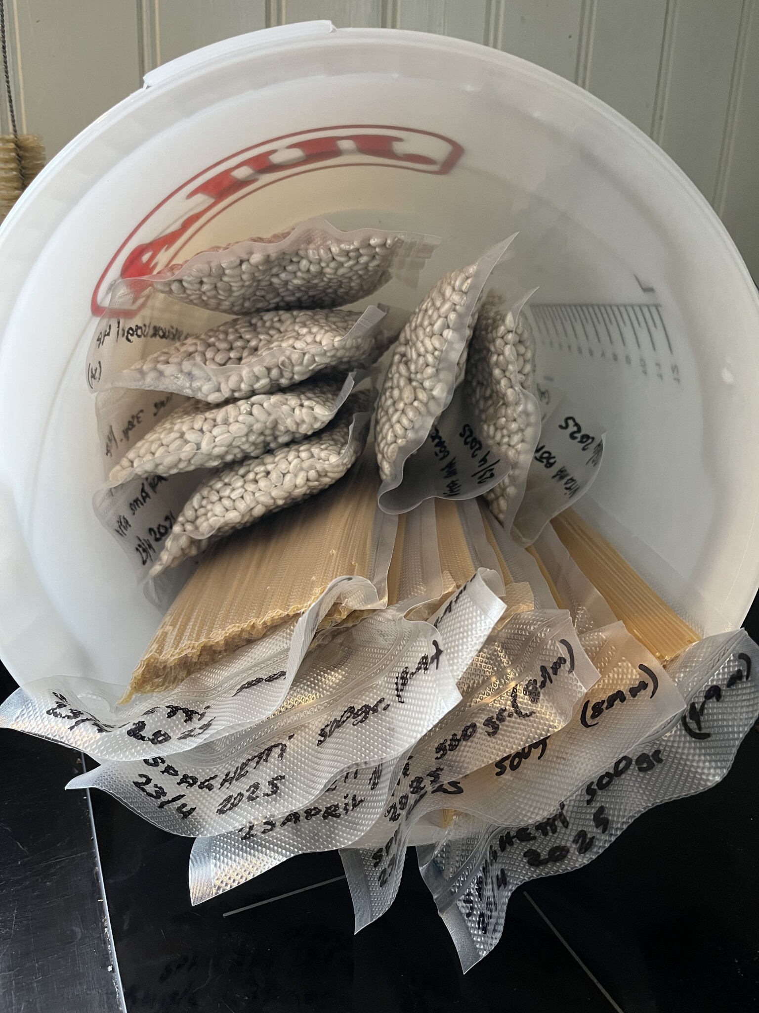 Det finns ju hur många sorters bönor som helst (känns det som) men när jag köper/förvarar saker så är det baserat på vad vi faktiskt äter och använder idag.. inte bara "spara för sparandets skull".. och vi käkar helst VITA och SVARTA BÖNOR! (och jag har en förkärlek till de små vita.. så därför blev det sådana)
