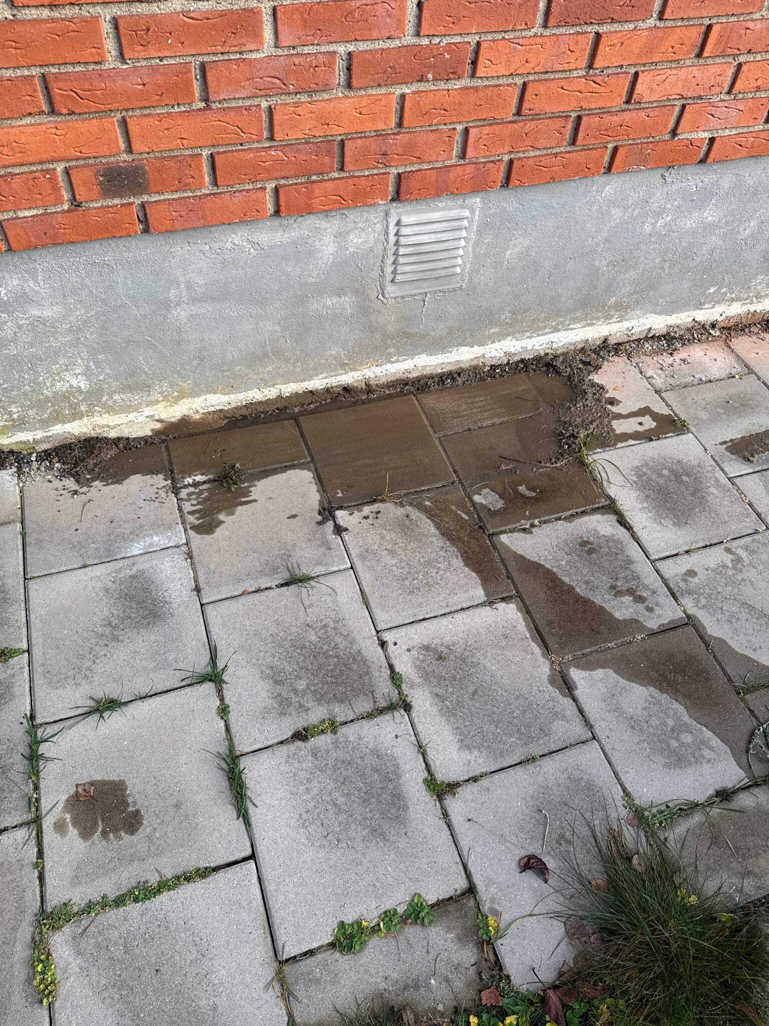 Slet upp plattorna och grävde lite innan jag kom till röret, noterade då ganska snabbt att det läcker ordentligt och det verkar heller inte vara monterat mot röret inne i grunden, utan ligger bara mot väggen. Är detta normalt?