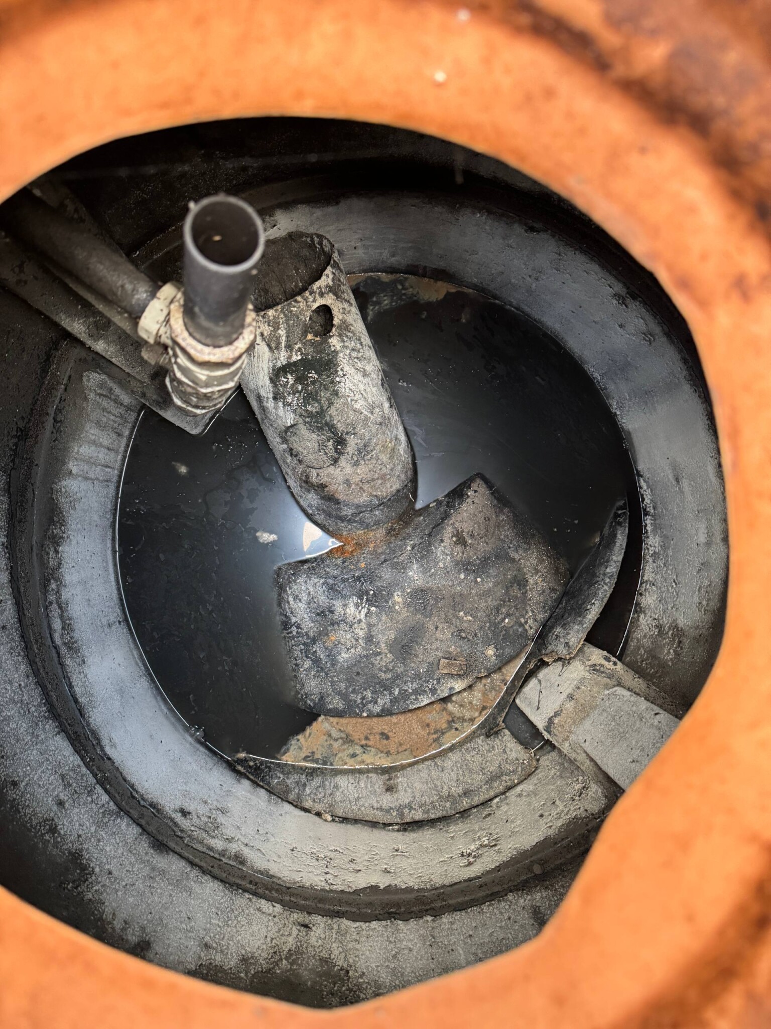 Tror det pajade när de gjorde sista slamtömningen och vet inte om de fyllt på vatten eller om de ens gör sånt i denna typ av brunn?