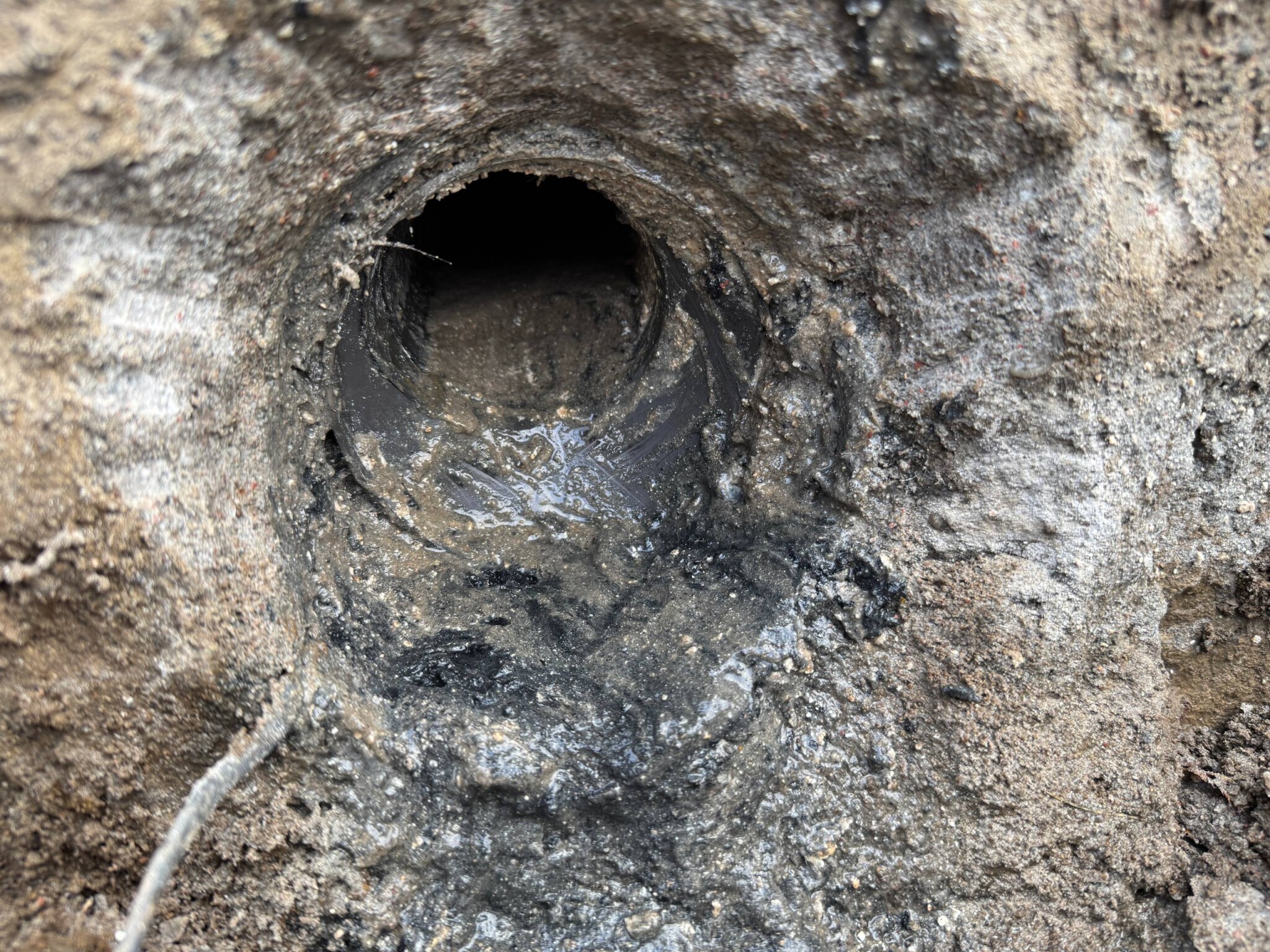 - Att det fins sand i den förmodade utloppet tyder dessvärre på på att hela brunnen har rört på sig uppåt och sedan sjunkit tillbaka...