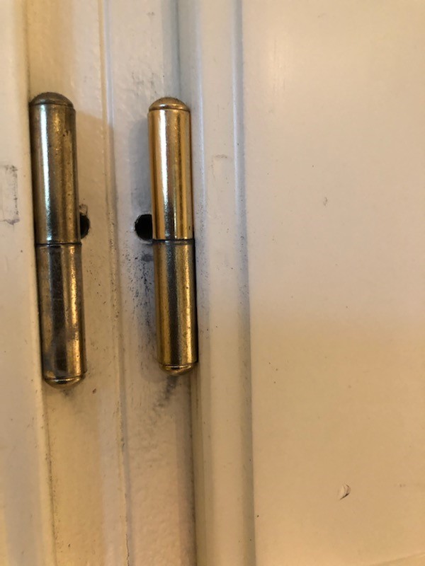 Från början satt det små silvriga gångjärn (se bild) men efter ett tag så börjar de först främst "färga av sig" svart och sen gå sönder.. Bytte då till andra lite större nyare gångjärn på några luckor men samma sak händer med dem.. fast ännu mer. De sprutar svart gegga runt om sig... (har även provat typ Ikeagångjärn insides men det fungerade inte särskilt bra och var väldigt mycket jobb. Så den idén är kasserad)