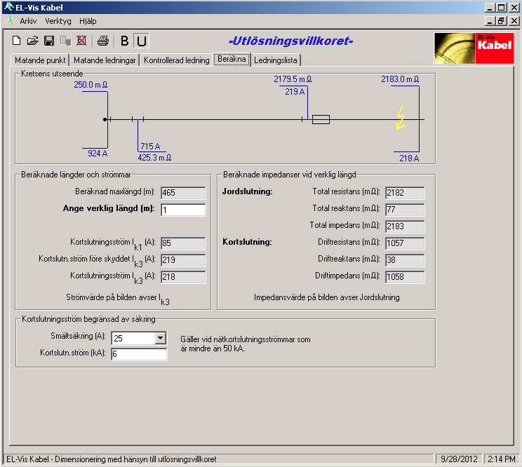 Det finns en diskussion runt detta i hjälptexterna till ELVIS.Bo.Siltberg skrev:Jag har försökt härleda siffrorna i Elvis men inte lyckats speciellt väl. Det finns alltför många faktorer där den största verkar vara resistiviteten. Elvis verkar använda 18.3 mΩ/m, åtminstone för detta fall med 10 mm² N1XV. Resistiviteten varierar med några tiondels mΩ mellan areor och mellan typ av ledare (EK, FK, RK), och den kan också skilja sig för en koncentrisk ledare. ElDim använder 18.0 rakt av vilket inte kan anses vara fel, dvs den skillnad på 9 meter eller 6 % tycker jag faktiskt inte är mycket att yvas över.