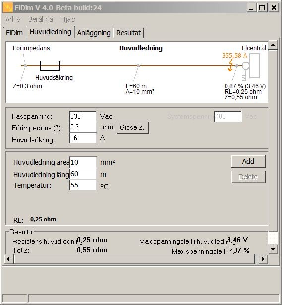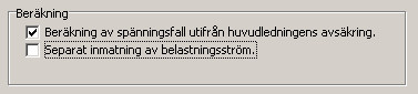Föreslår: Beräkna spänningsfall i anläggningen med max belastning på huvudledningen.