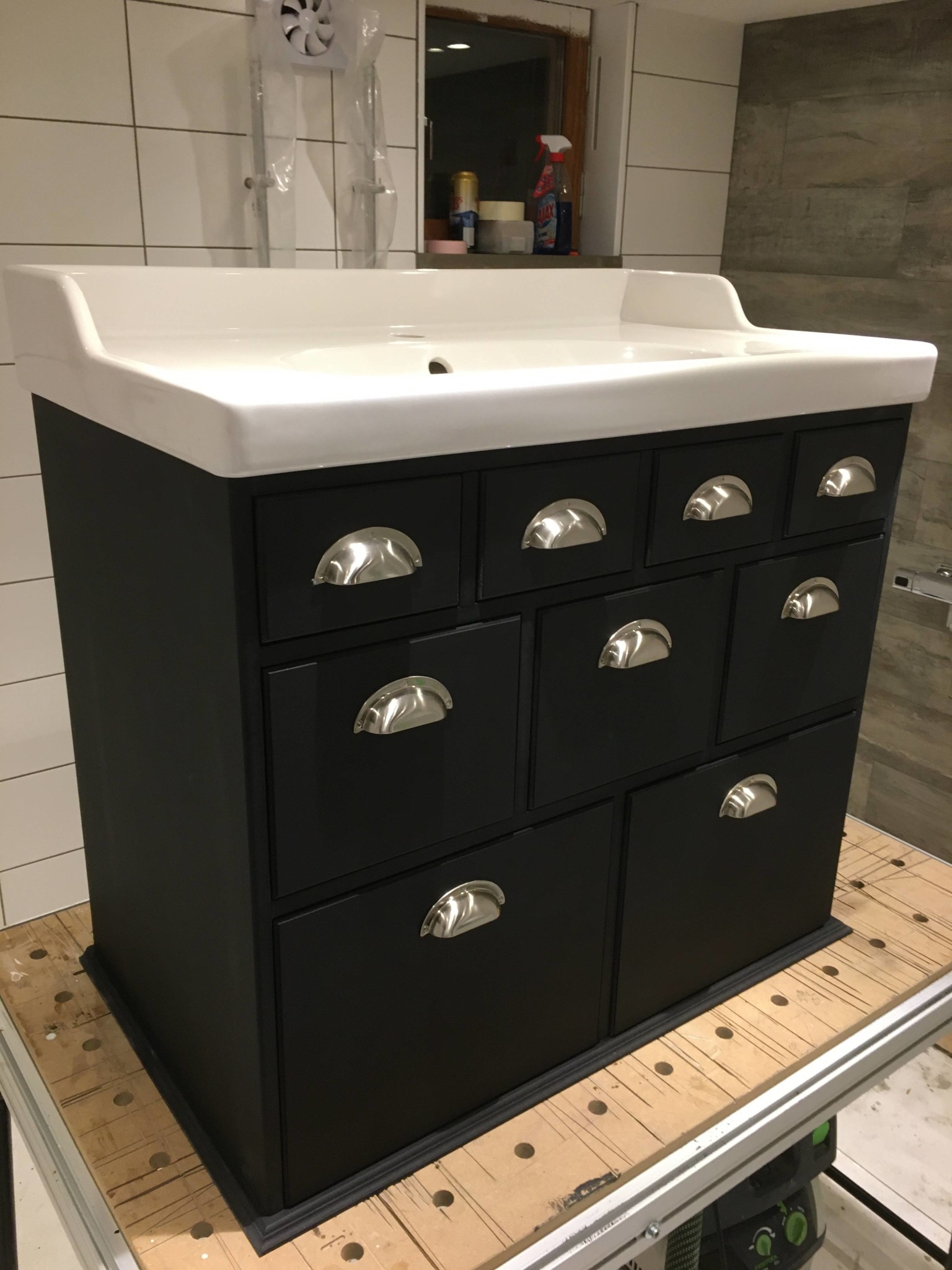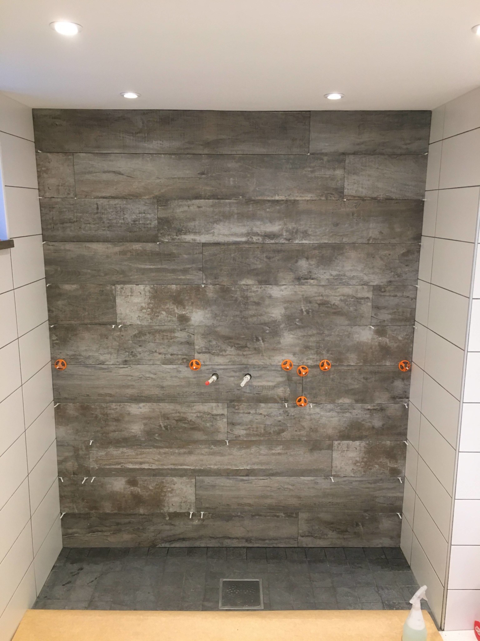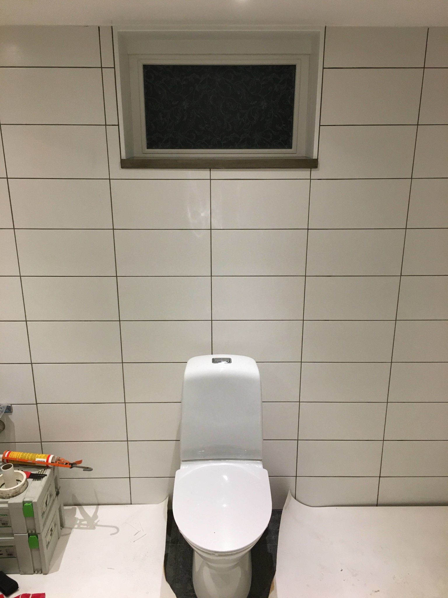 Jobb på agendan men hinner ändå småprojekt - Fondväggen fogad, tvättad, silikon i hörnor och mot tak, smygarna på plats. (Självklart hård-fog i vägg-golv vinkel.)