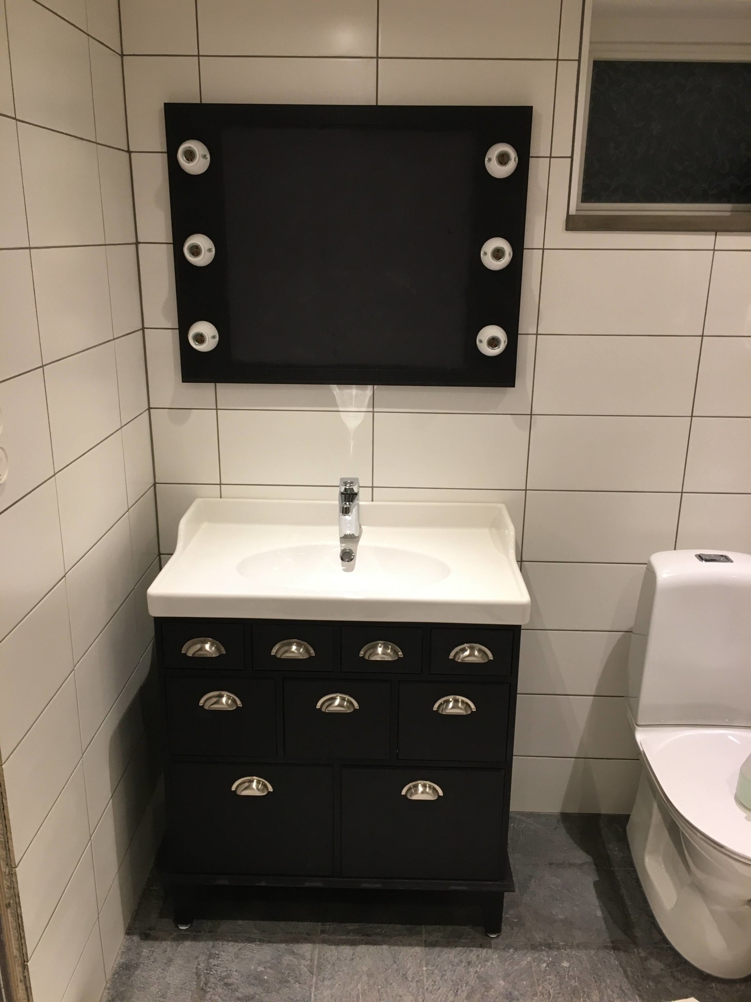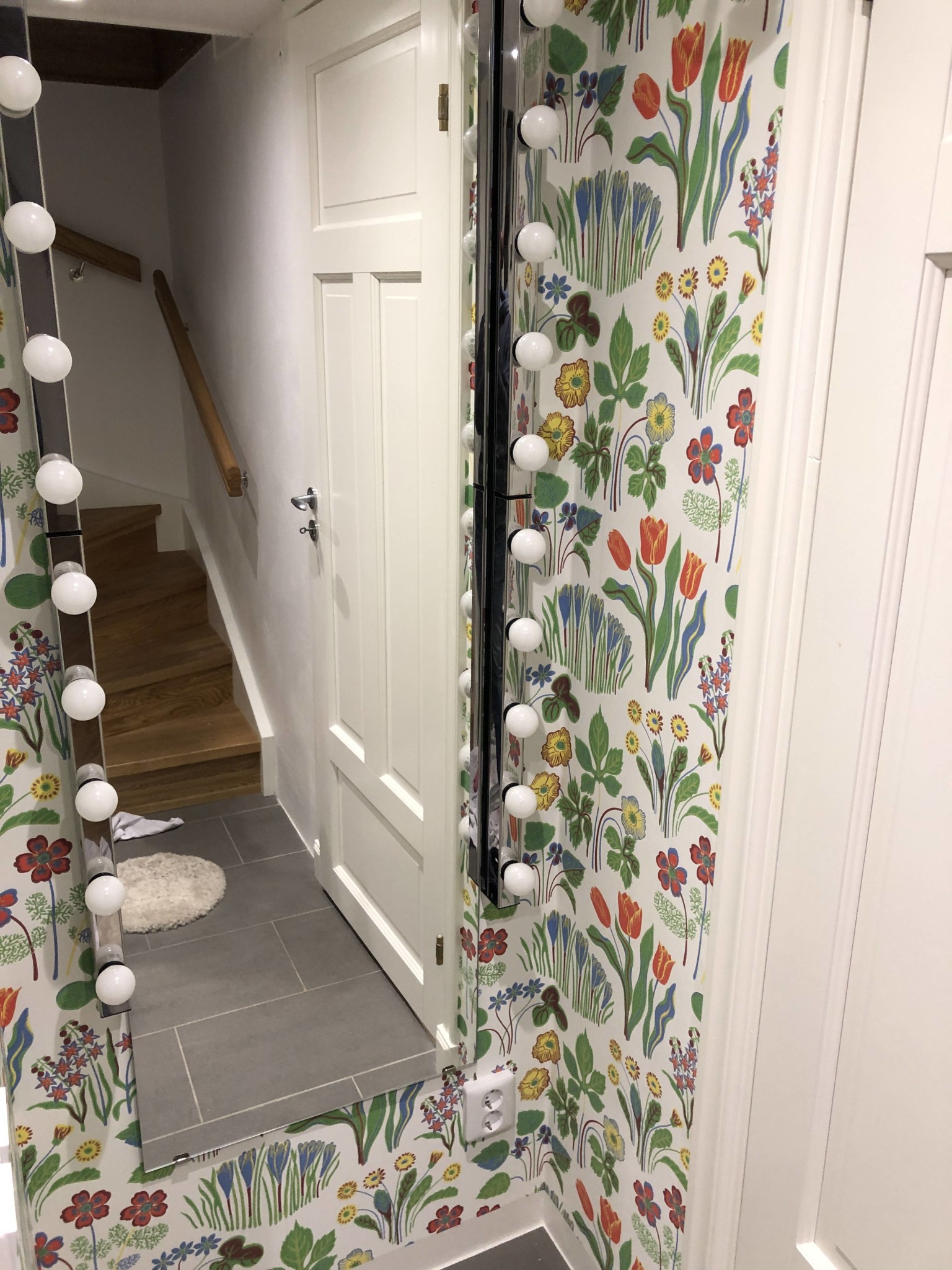 Frun beställde en ”sminkspegel”!? Vad jag förstår så handlar det om mycket och bra ljus. Jag föreslog LED lister men det var inte bra heller. Så i något svagt ögonblick sa jag typ ”tivolispegel” och fick ett ”jaa!! En sån!!”
