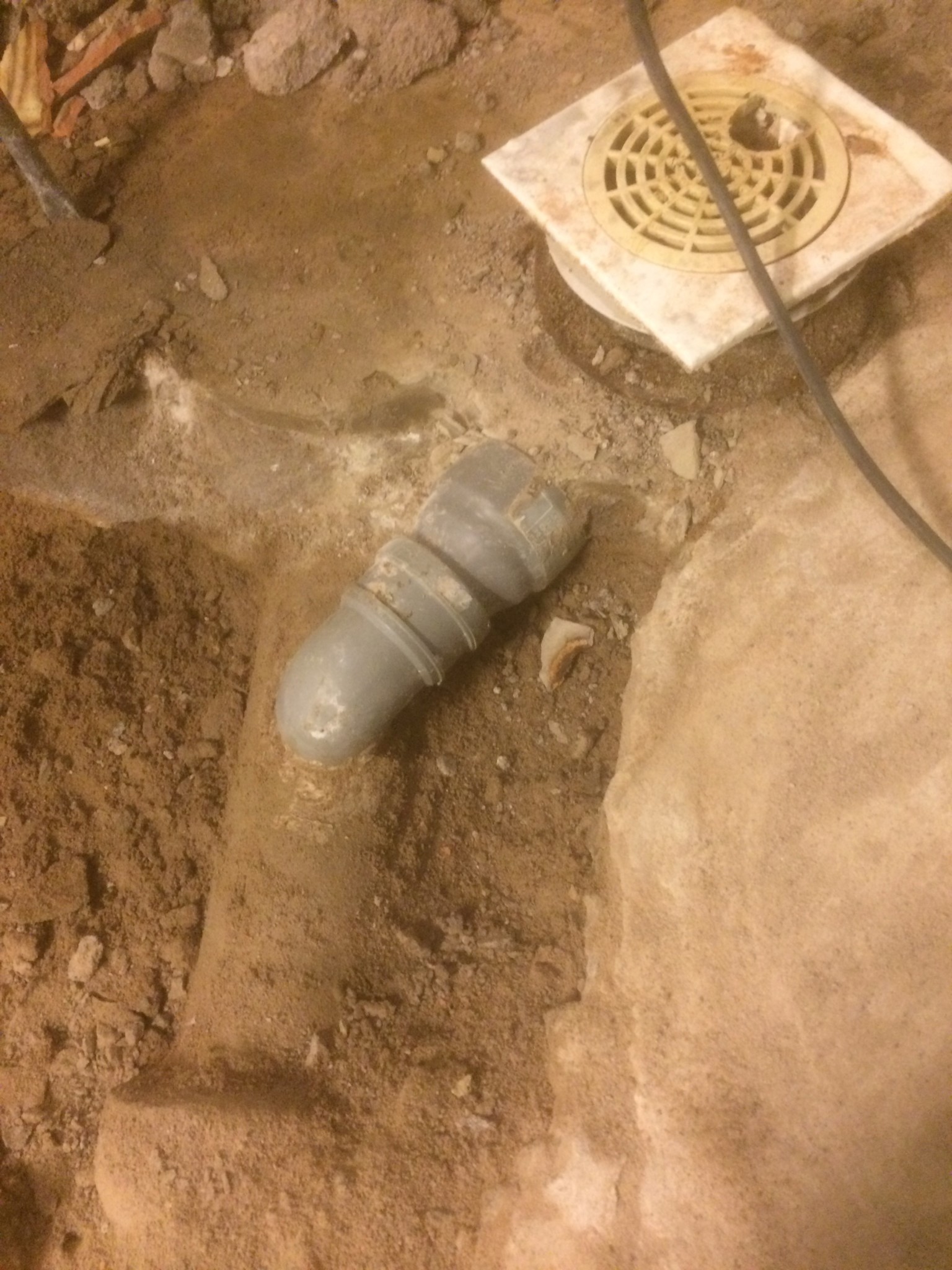 Så efter att ha dammat ned bilen nå så förfärligt med jobbkläderna åkt till bolaget så fanns det ett avlopp vid 19 tiden - Snett vint och skevt men fullt fungerande. Jaa.. Det kommer att korrigeras när jag gräver ut mer.