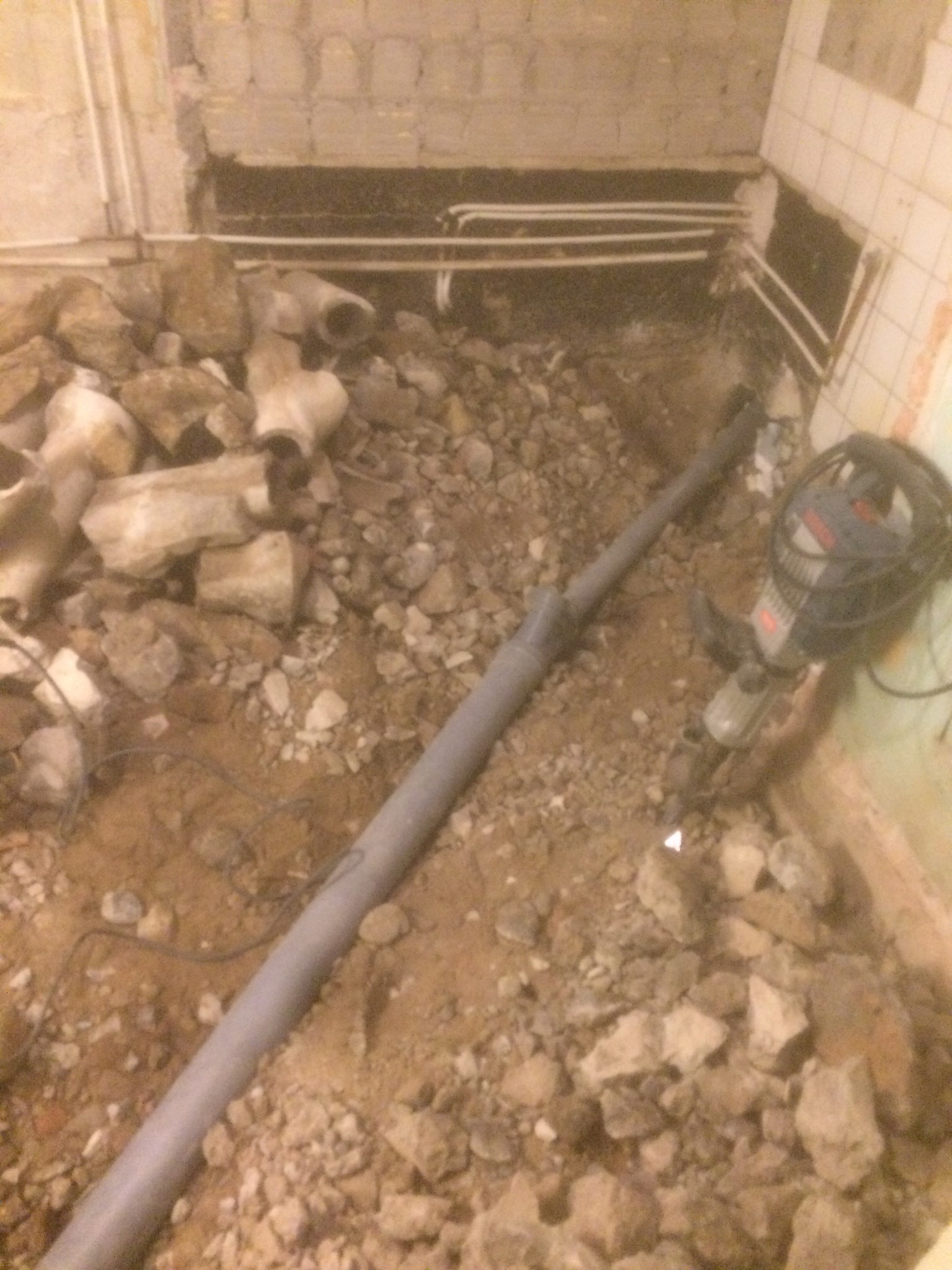 Så det är lite catch 22 just nu, riva golv - dra nytt vatten - klippa det gamla...