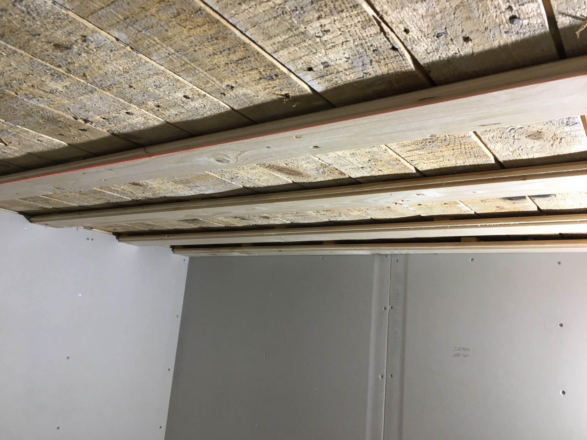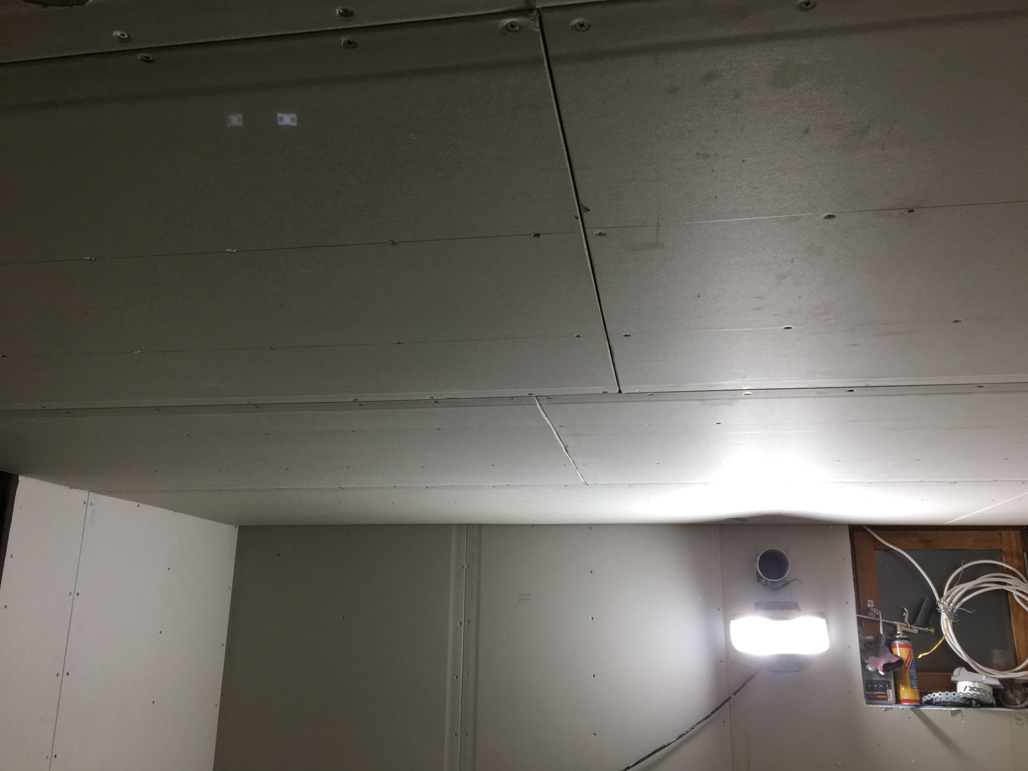 Alla väggar som skall kläs är nu klädda med K-plywood och gips.