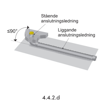 Och det är bara samlingsledning (alltså flera anslutningar) som behöver vara 2x45º i fallets riktning nedåt.