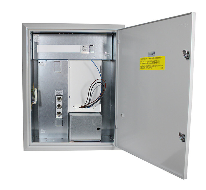 Typ sådant här skåp där övre fältet där HB sitter är fastighetsägarens del och ingen plombering eftersom det ändå inte tillför något. De tre säkringarna är så klart plomberade då dom sitter innan mätaren.