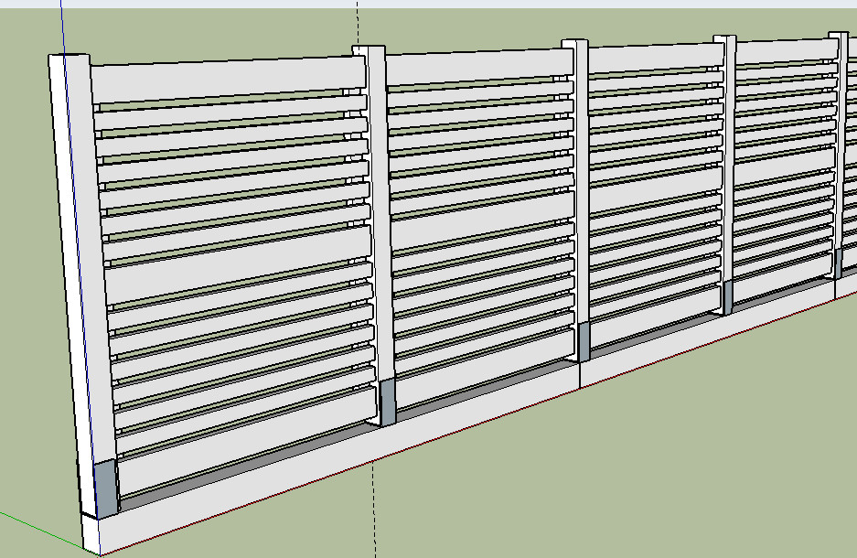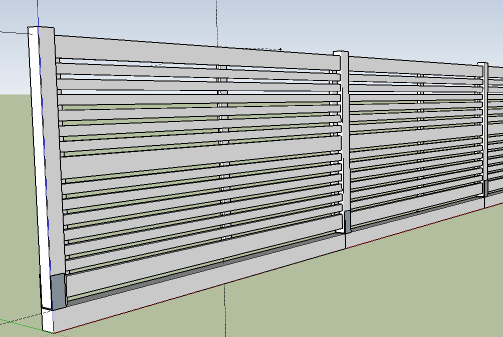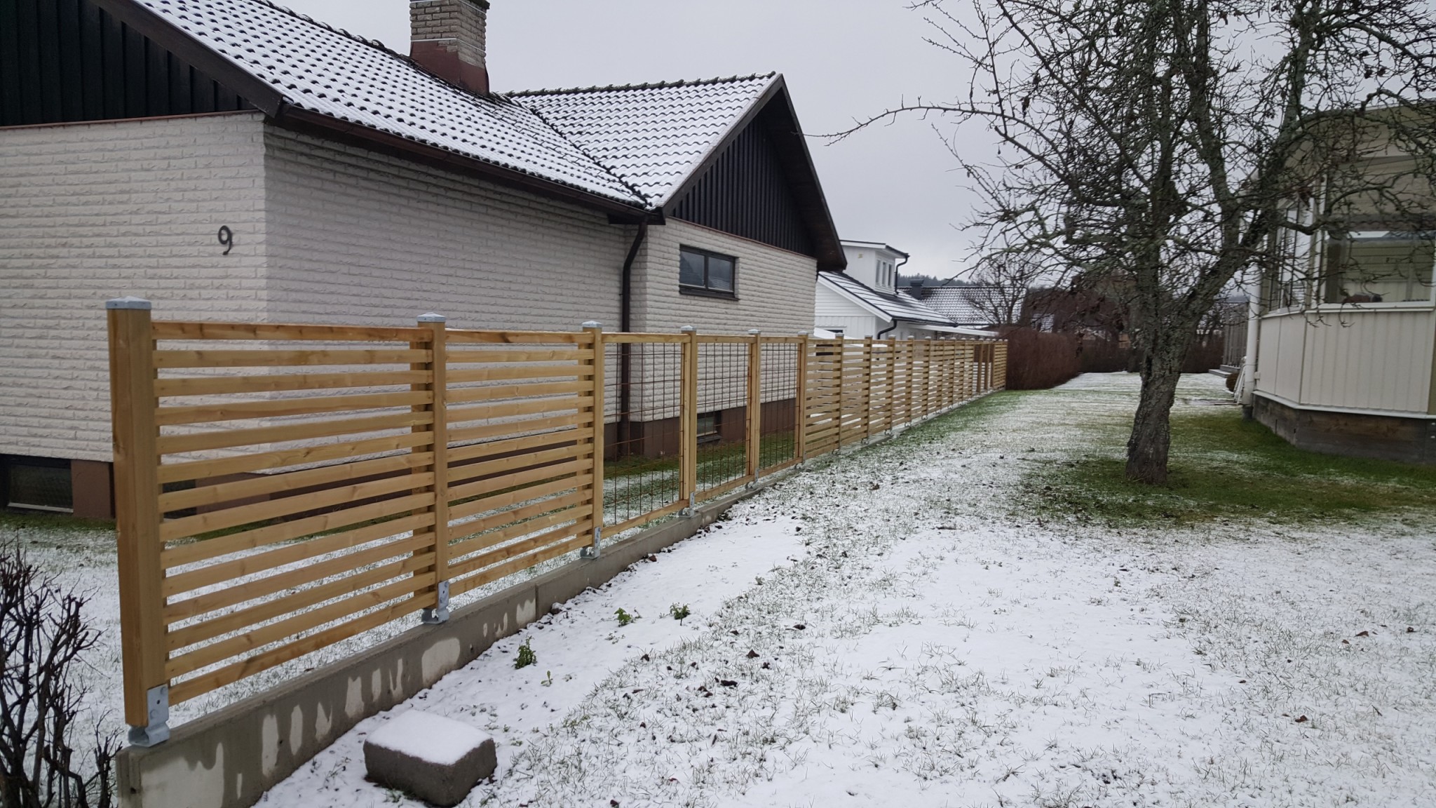 Staketet skall vara av typen liggande ribbor (gärna liksidigt) med tryckimpregnerat virke som skall laseras lite brunare. Har en total längd på 24 m (rak sträcka) och höjden blir nog mellan 100-120 cm.