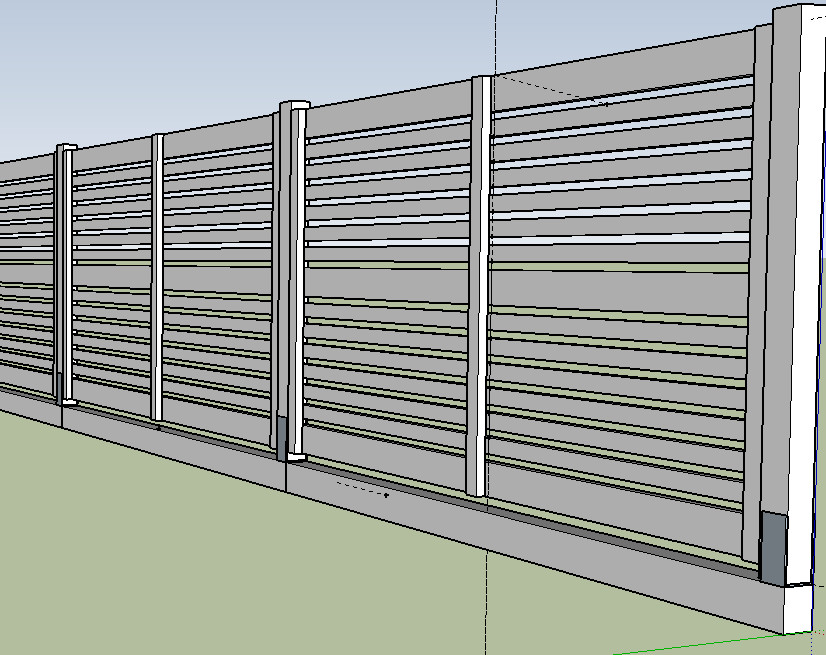 För att bryta av "planket" tänker jag mig ca 3 sektioner fördelat med "armeringsnät" med planterade klätterväxter.