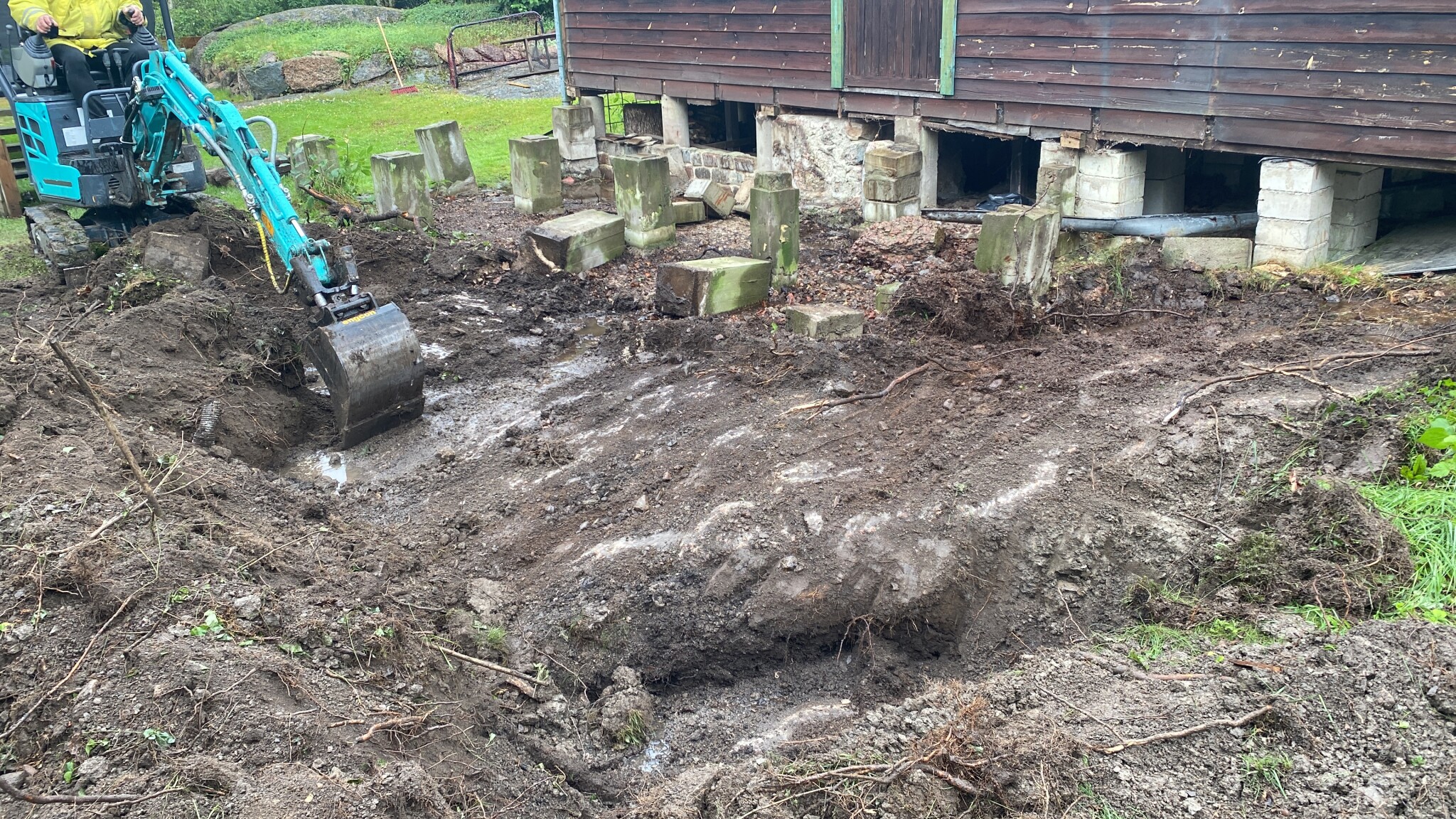 Försökte gräva upp en halvstor ekstubbe men det mäktade inte grävmaskinen med. Får bli att handgräva resten för den ska bort!