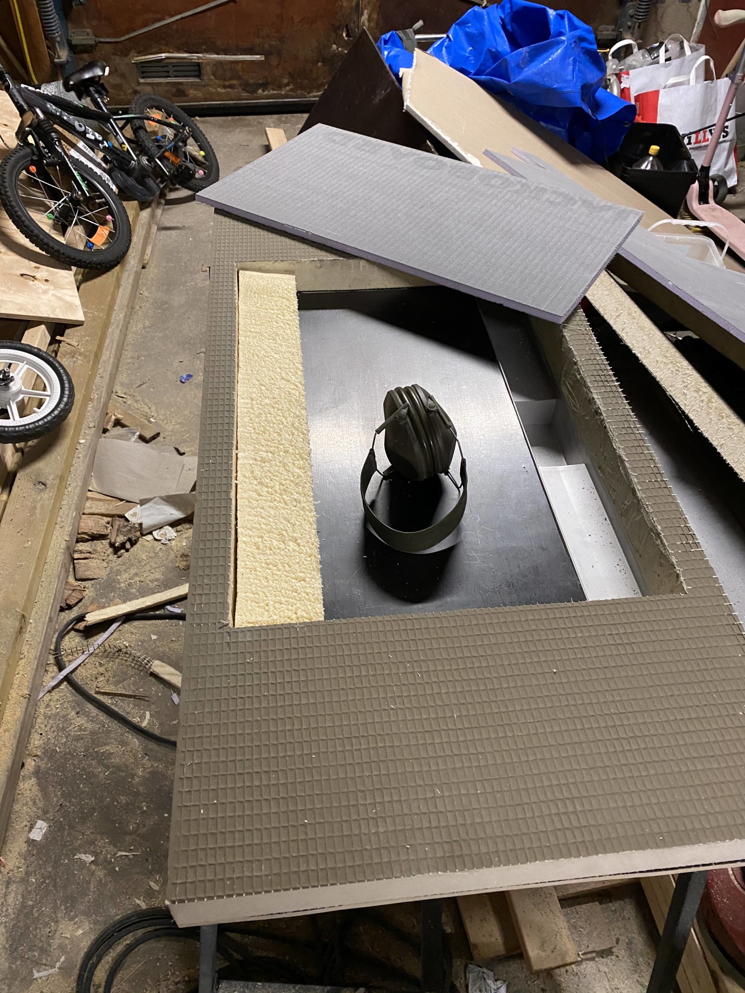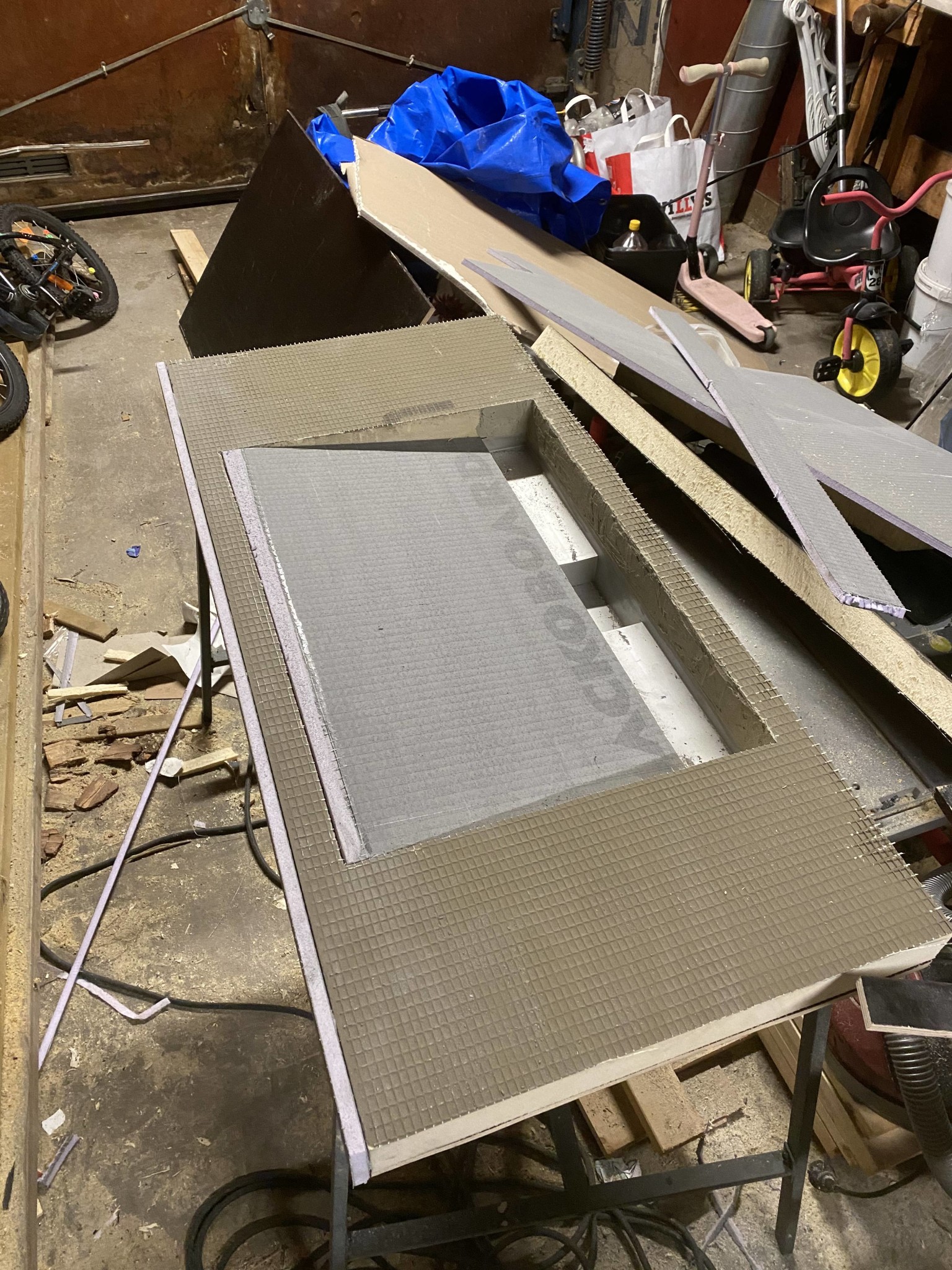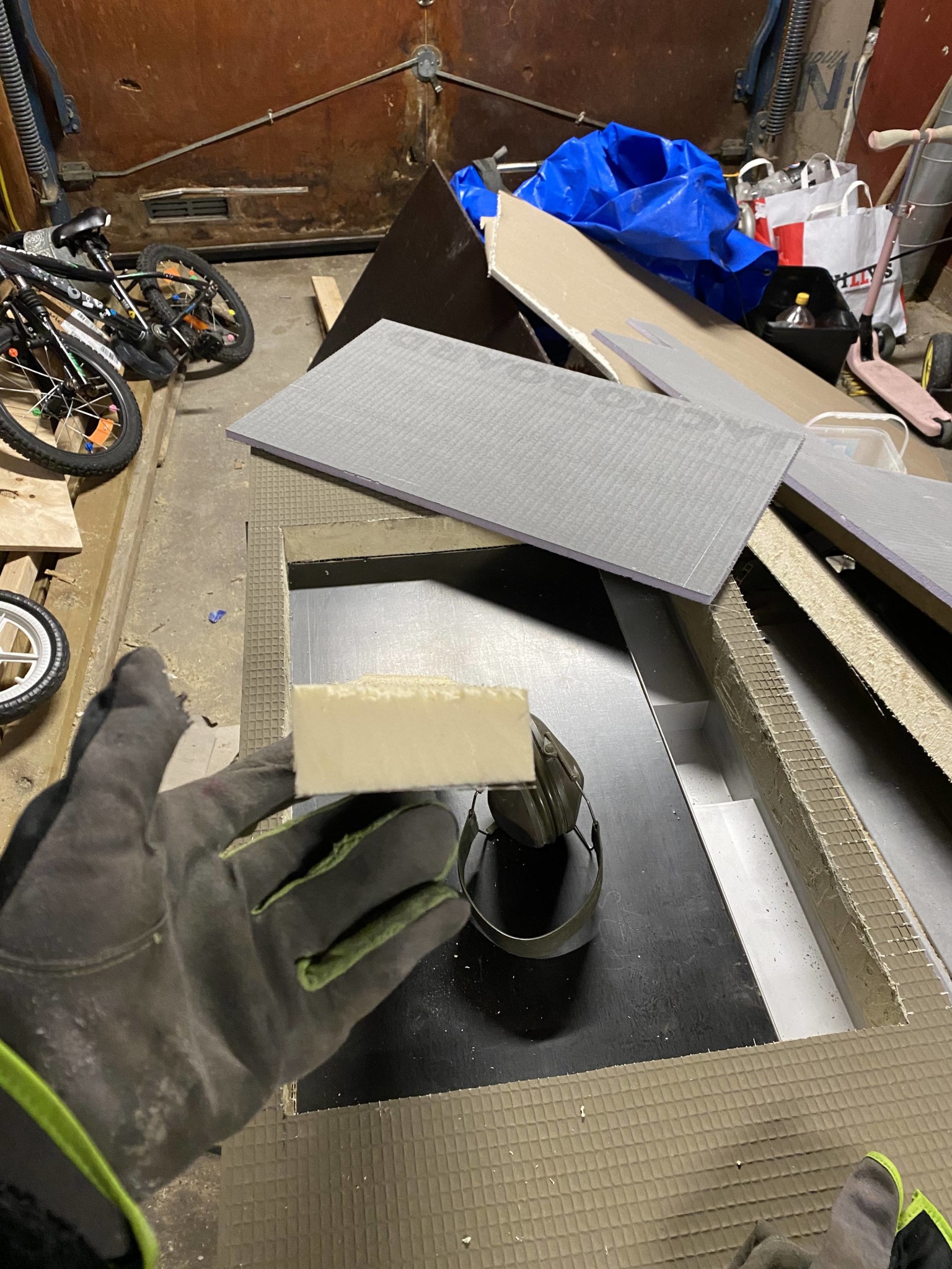 Sedan gjorde jag skivan som ska ligga i hålet och skapa lutningen. Här har jag använt 12mm våtrumsskiva som blev över från badrummet.