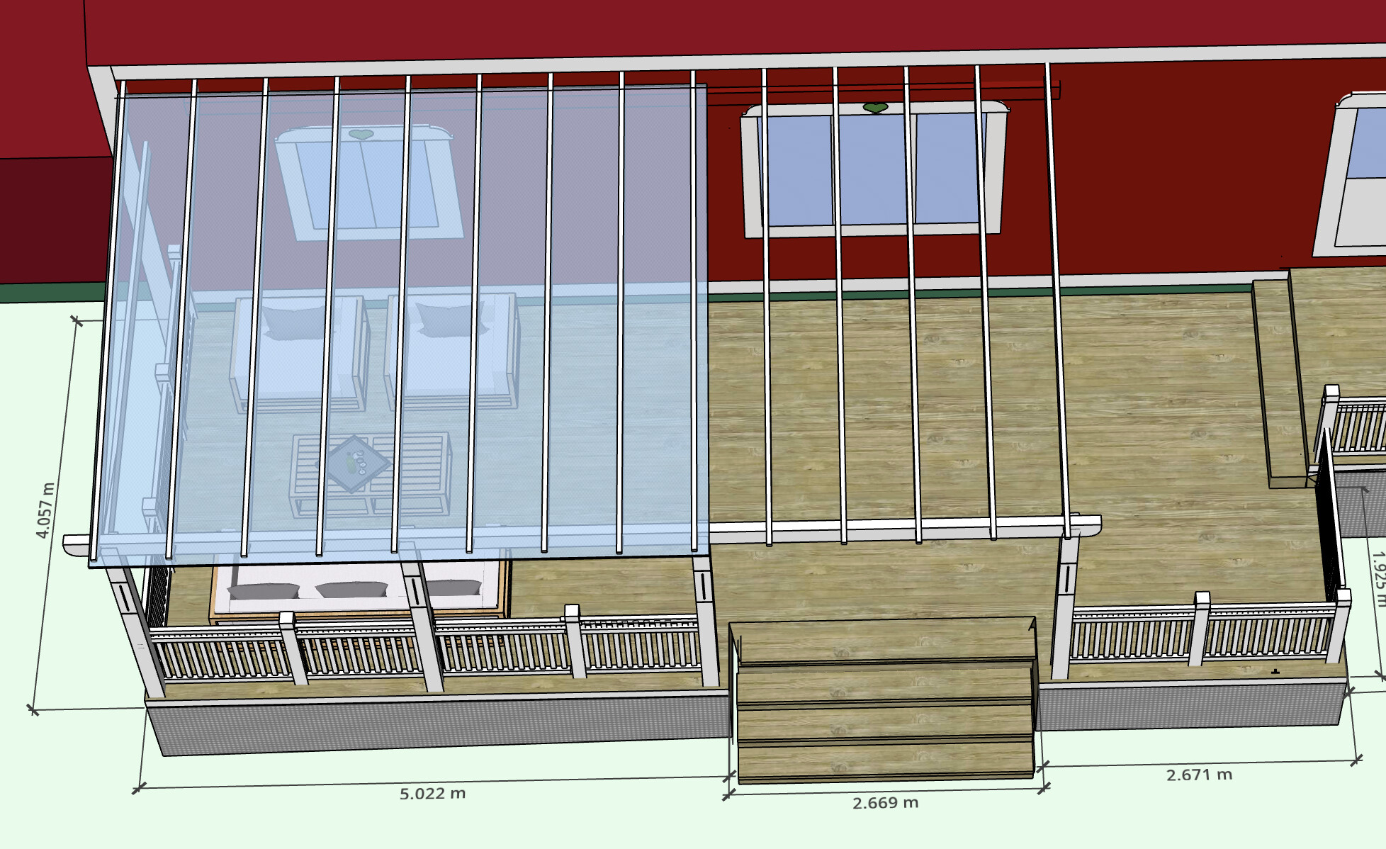 Låter inte altanen gå hela vägen ut till husknuten utan drar in den ca. 60cm. Tänker att detta kanske inte blir lika snyggt som att den går hela vägen ut eller vad tror ni?