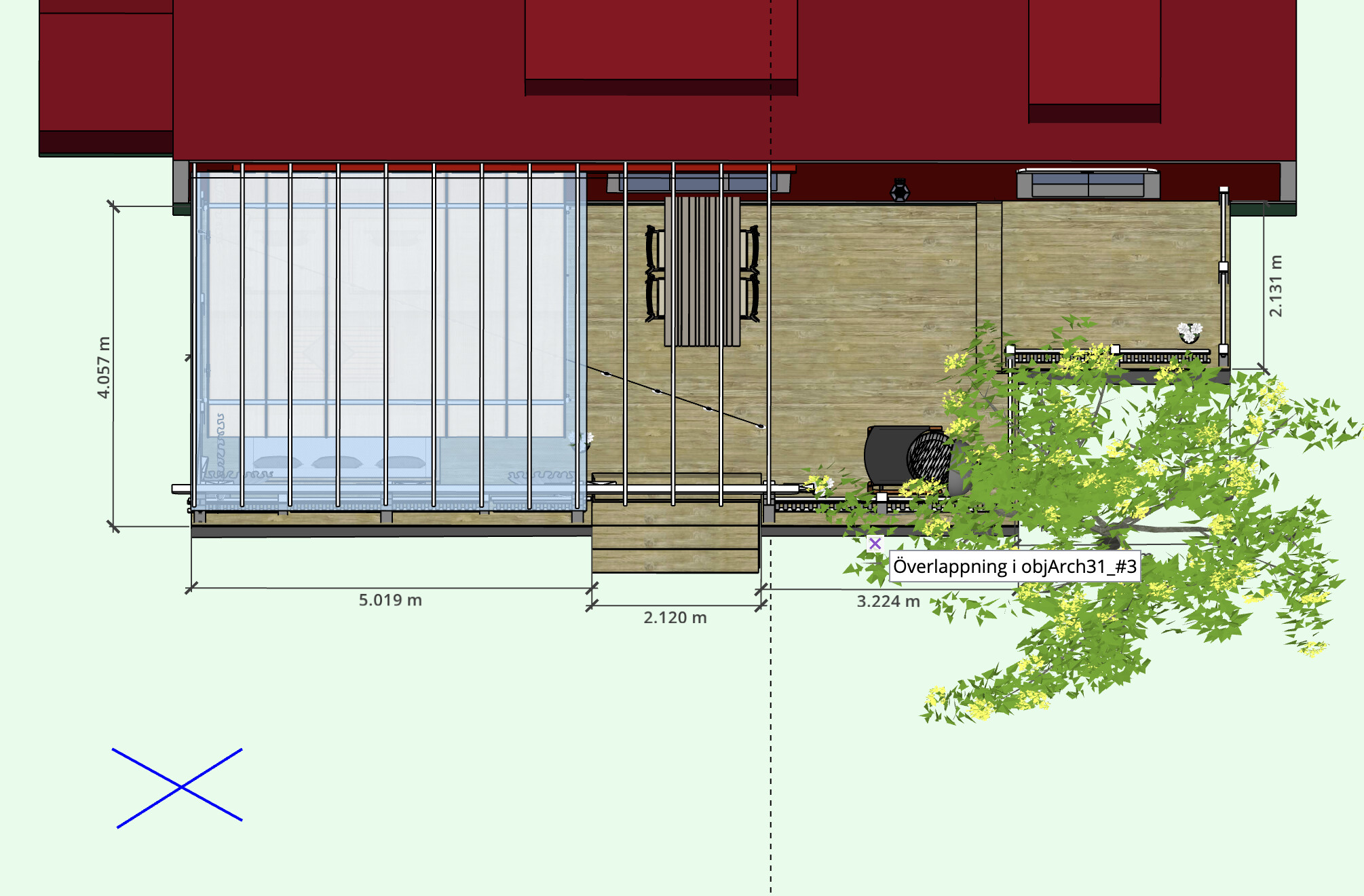 Det står ett stort äppelträd lite till höger vilket är anledningen till att altanen är indragen, sen tänkte jag lite att det skulle kunna bli en naturlig plats för grillen i hörnet vid trädet och som då också inte skulle hamna under plasttaket.K kniv skrev: