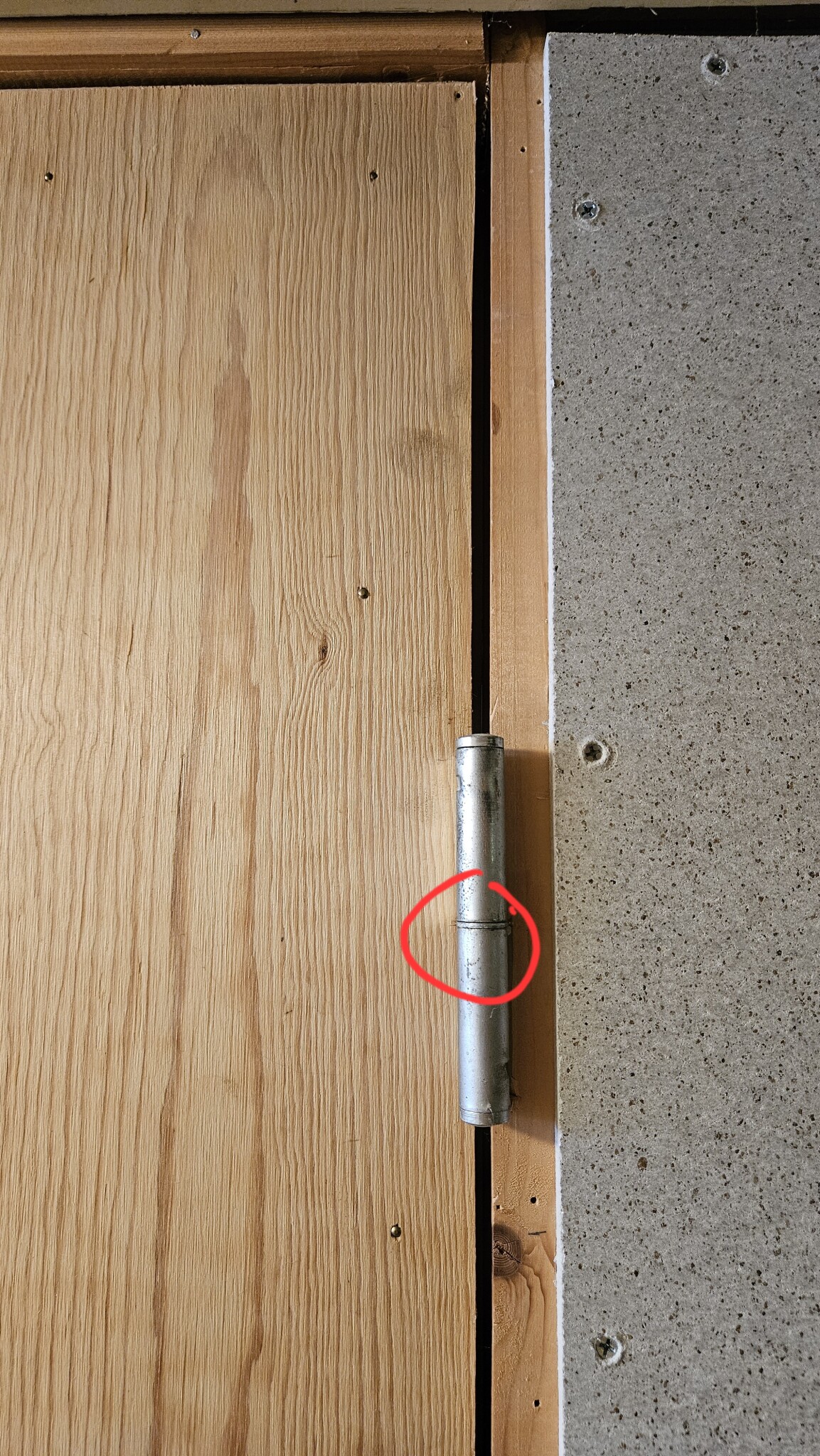 Gnisslet var dörren som skrapade i tröskeln. Filade upp två brickor och lade emellan. Det är så lågt i tak att dörren inte går att lyfta av, man måste lossa gångjärnen. Antagligen därför jag har dragit mig för det.