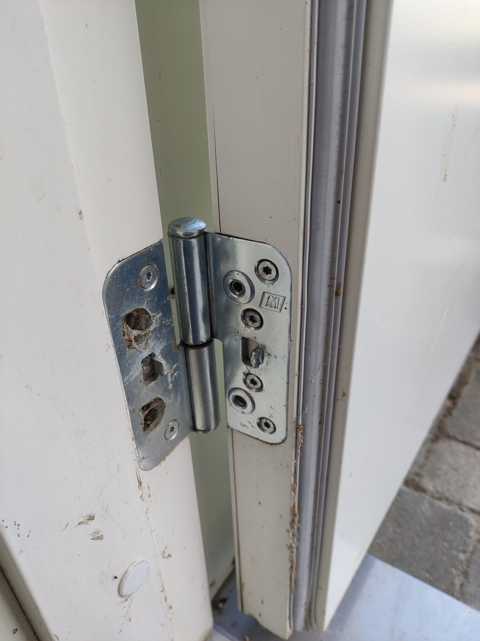 Dörrbladet i ytterdörren hade börat få en lite väl stor glipa i nederkant. Dessvärre så var det någon som hade dragit sönder skruven för attt justera bladet:
