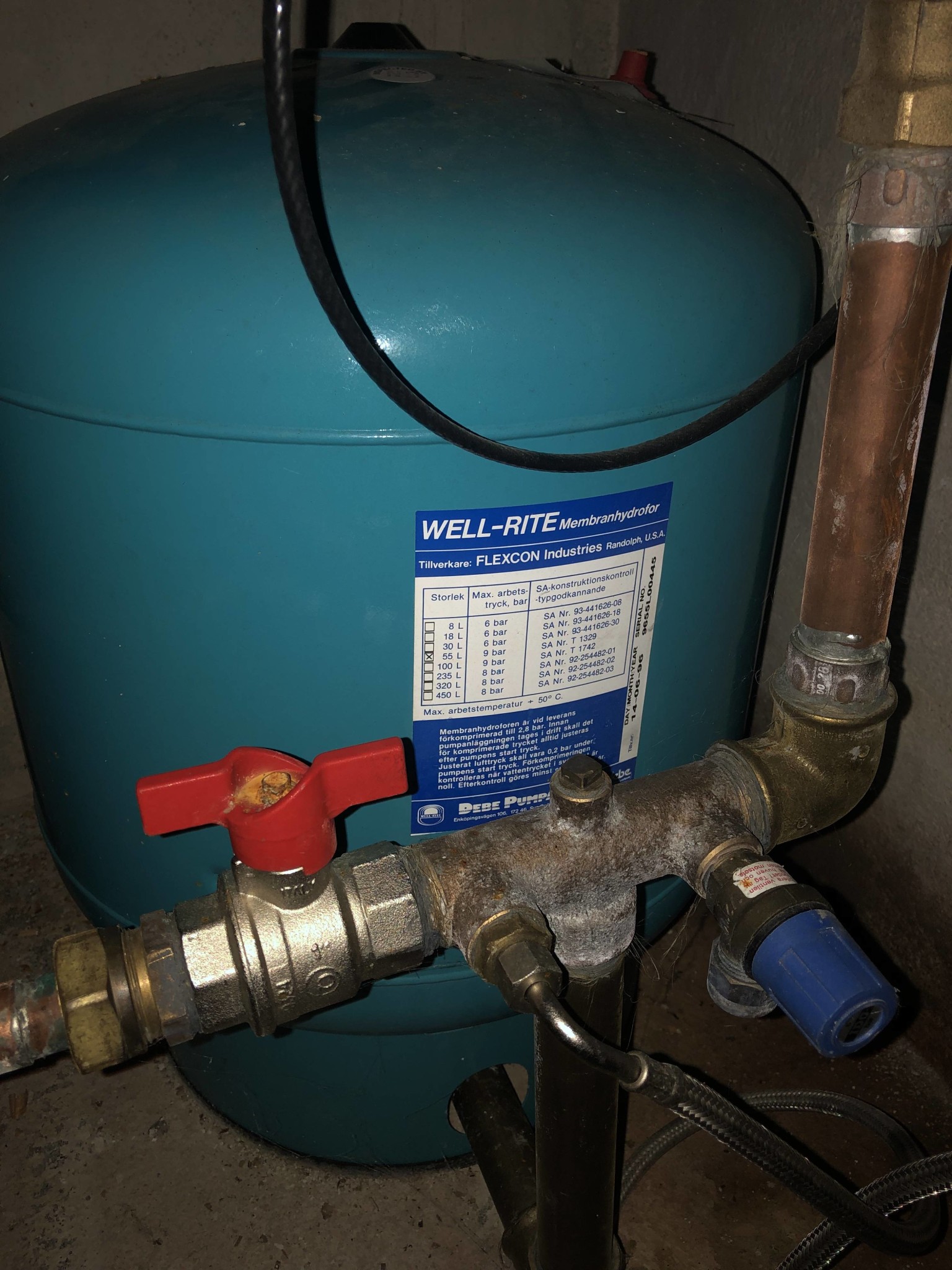Verkar som om pumpen slår av för tidigt. Tror den skall högre upp i tryck egentligen men vet inte säkert. Bifogar bild på elektronik och tryckkärl i hopp om att någon vet råd