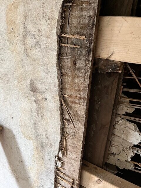 En bit putsnät som fästes med märlor i trät och sedan dras ut lite så det blir ett mellanrum, så puts kommer lite innanför nätet och fäster bra. Men troligtvis kommer det att bli en spricka mellan nya och gamla putsen, som inte går att få bort, återkommer kanske med jämna mellanrum. Blir det ojämnt med puts, så blir en vända med spackel.