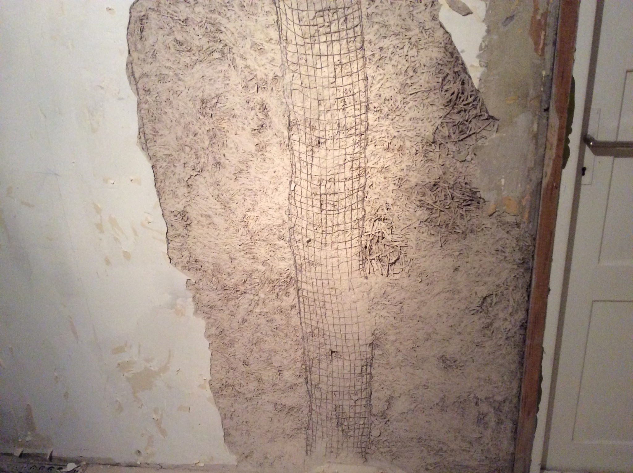 Håller på och renoverar ett rum i källaren i mitt hus från 1946. En av väggarna är klädda med Träullit. Se bild
